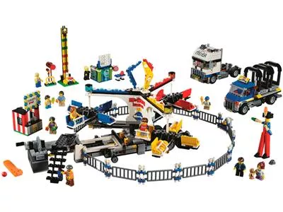 - Enthält 12 Minifiguren: Jongleur auf Stelzen, Schaustellerin beim Zielwerfen, Kraftprotz, Kartenverkäuferin, Lastwagenfahrer/Fahrgeschäftbetreiber, 2 Frauen, 2 Mädchen, 2 Jungen sowie einen Mann, dem vom vielen Fahren ein wenig „unwohl“ ist
