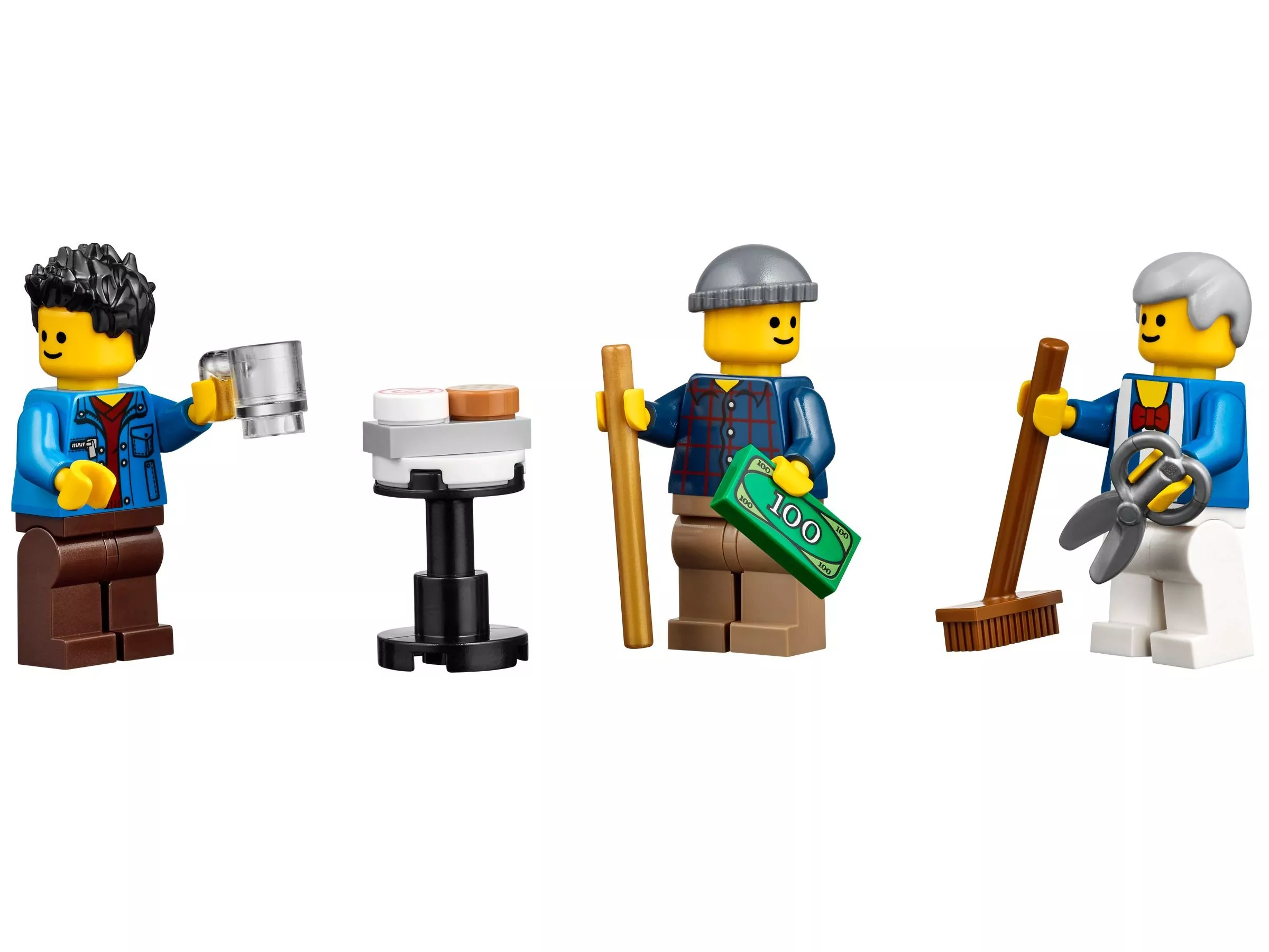 В наборе присутствуют 6 минифигурок с аксессуарами: детектив Эйс Брикмен, парикмахер Эл, таинственная незнакомка в красном платье, женщина-полицейский, игрок в дартс и бильярдист, а также множество эксклюзивных деталей и элементов, которые не встречаются ни в одном другом наборе.