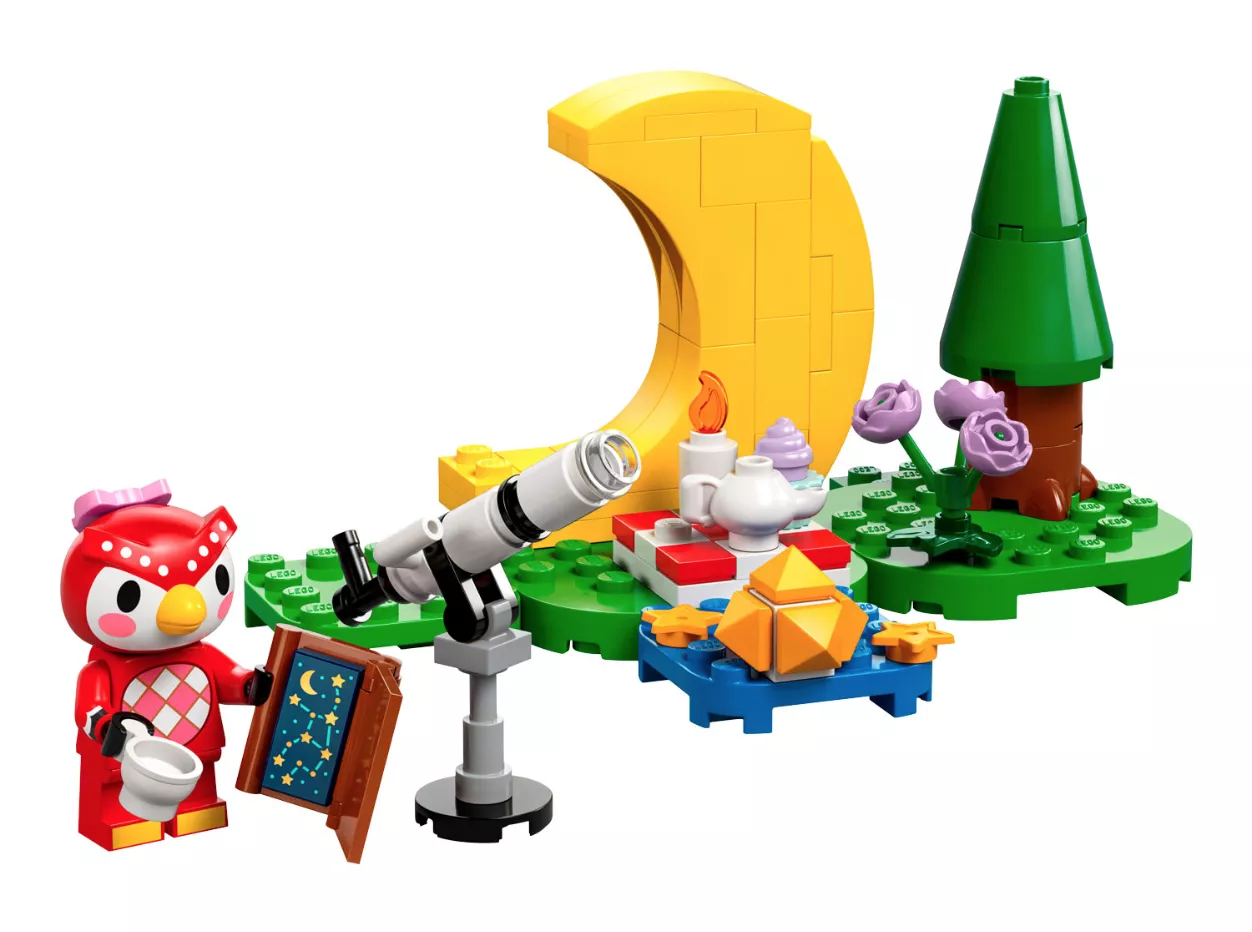 • Игровой природный набор вдохновляет на творческую игру: в комплект входит минифигурка совы Селесты из Animal Crossing, игрушечный телескоп, книга по астрономии, костер, чайник, чашка, кекс и драгоценные фрагменты звезд.