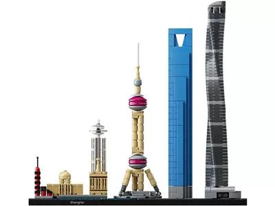 Mit diesem realistischen Modell 21039 aus der LEGO Architecture Skyline Kollektion lässt sich die chinesische Verknüpfung historischer und moderner Architektur eindrucksvoll nachbilden. In dieser LEGO Sammlerkollektion sind berühmte Wahrzeichen wie der Chenghuang Miao Tempel, der Longhua Tempel und die Pagode, das Radisson Blu Hotel, der Bund, der Oriental Pearl Tower, das World Financial Center, der Shanghai Tower und Hangpu River enthalten sowie ein Shanghai-Namensschild. Die LEGO Architecture Skyline Modelle sehen toll in jeder Vitrine zu Hause oder im Büro aus und sprechen besonders Sammler an, die eine Affinität zu Reisen, Architektur, Kultur, Geschichte und Design haben. Jedes Set ist maßstabsgetreu nachgebildet, d. h. die einzelnen Bauwerke besitzen dasselbe Größenverhältnis wie in der Realität, und auch die Farbgebung entspricht den Originalen.