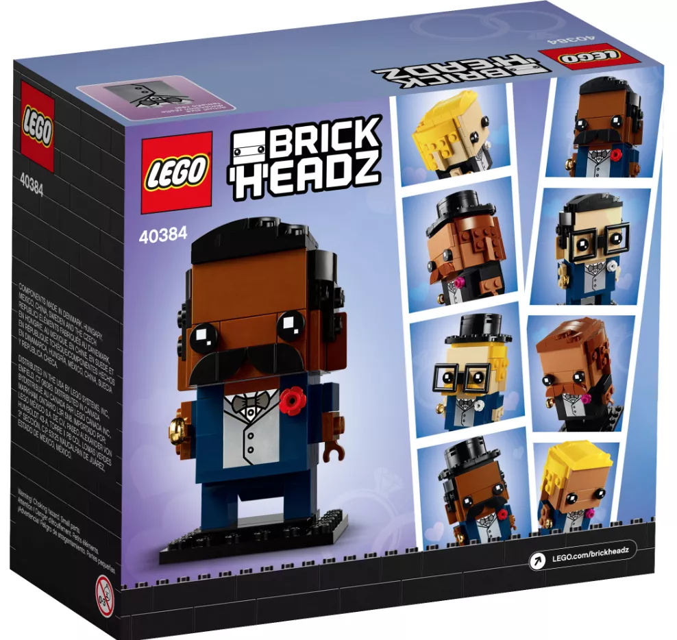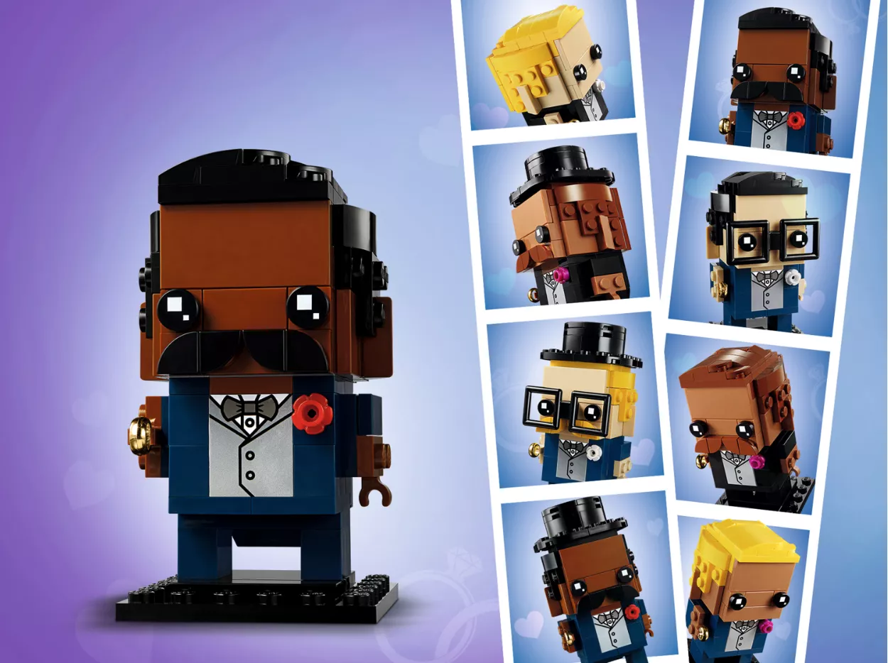 • Эта коллекционная модель LEGO BrickHeadz элегантно одетого джентльмена со специальными элементами для создания различных выражений лица, причёсок и цветов кожи станет отличным подарком для будущего жениха.