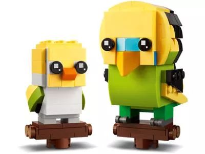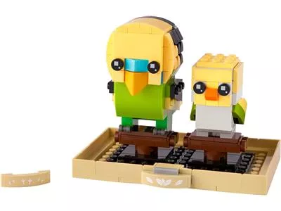 Die Herzen kleiner Vogelfreunde werden dem BrickHeadz Bauset und Schaustück „Wellensittich“ (40443) sofort zufliegen. Der Wellensittich und das Küken sitzen auf legendären BrickHeadz Ständern, die wie Vogelstangen aus Holz aussehen. Die Ständer passen auf die robuste braune Grundplatte, die dem Boden eines Vogelkäfigs nachempfunden und mit 2 Aufklebern verziert ist, die Federn und Fußabdrücke darstellen. Dieses Tierbauset ist ein perfektes Geschenk für alle Kinder, BrickHeadz Sammler und Vogelfreunde.