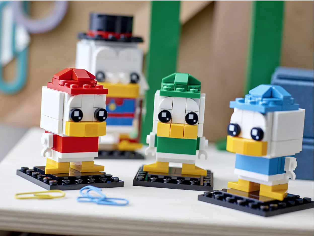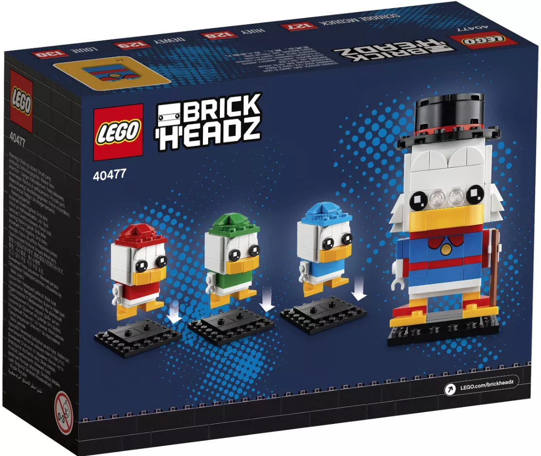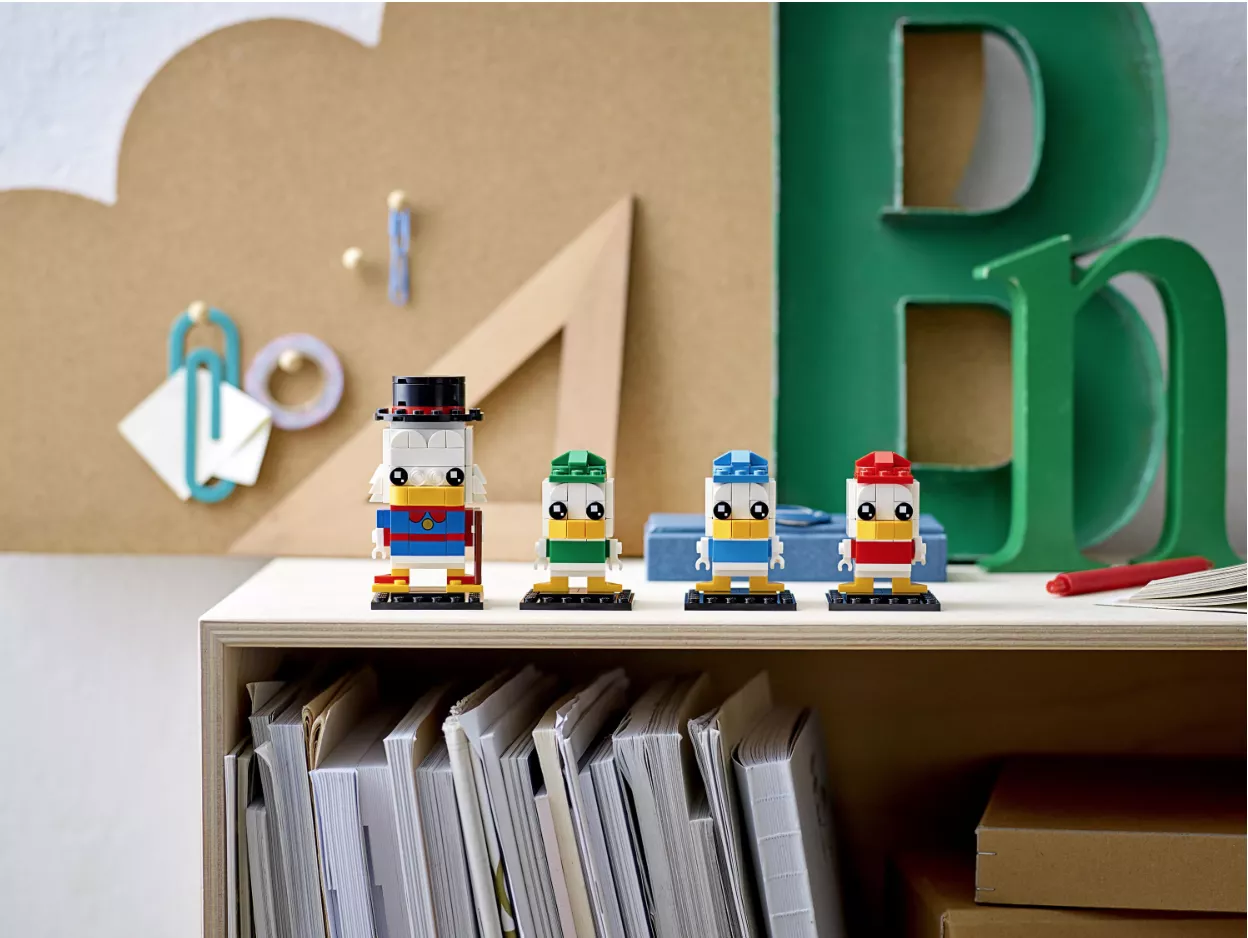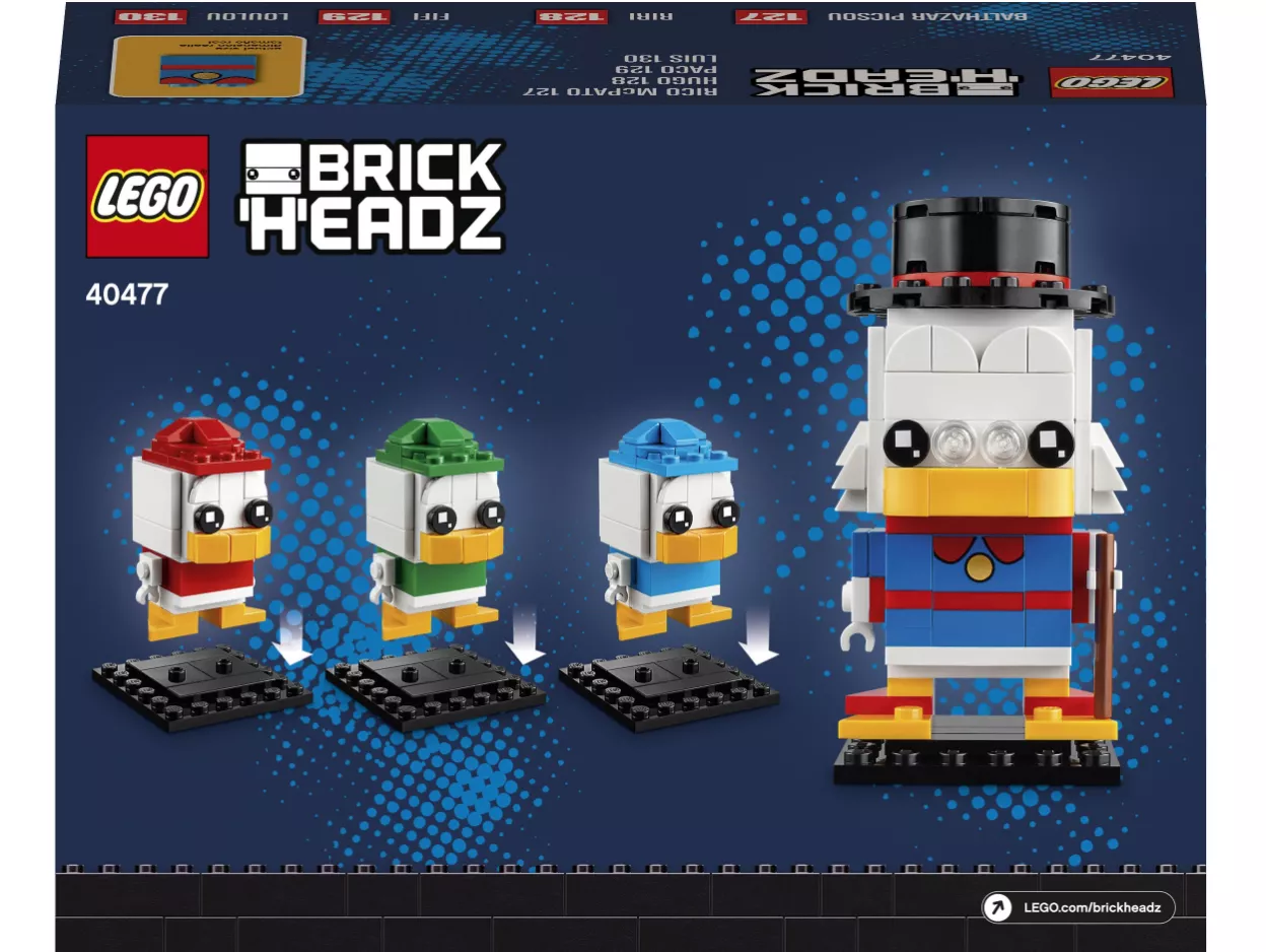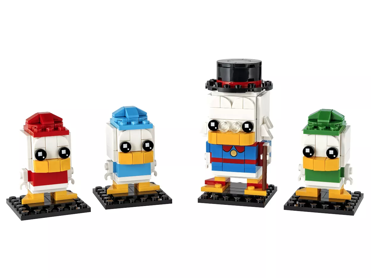 - Коллекционный набор для сборки легендарного персонажа Disney Скруджа Макдака и его внучатых племянников, утят Билли, Вилли и Дилли, в версии LEGO BrickHeadz
