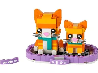 Dieses witzige LEGO BrickHeadz Bauset zum Sammeln besteht aus 2 Figuren. Eine rot getigerte Katze und ihr Junges sitzen zusammen in einem Korb.