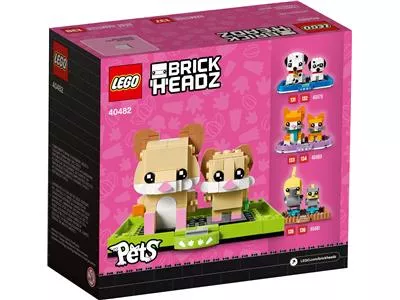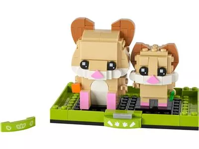 Superputziges Bauset zum Sammeln mit LEGO BrickHeadz Modellen eines Hamsters und eines Babyhamsters, die nebeneinander auf einer Stellplatte sitzen.