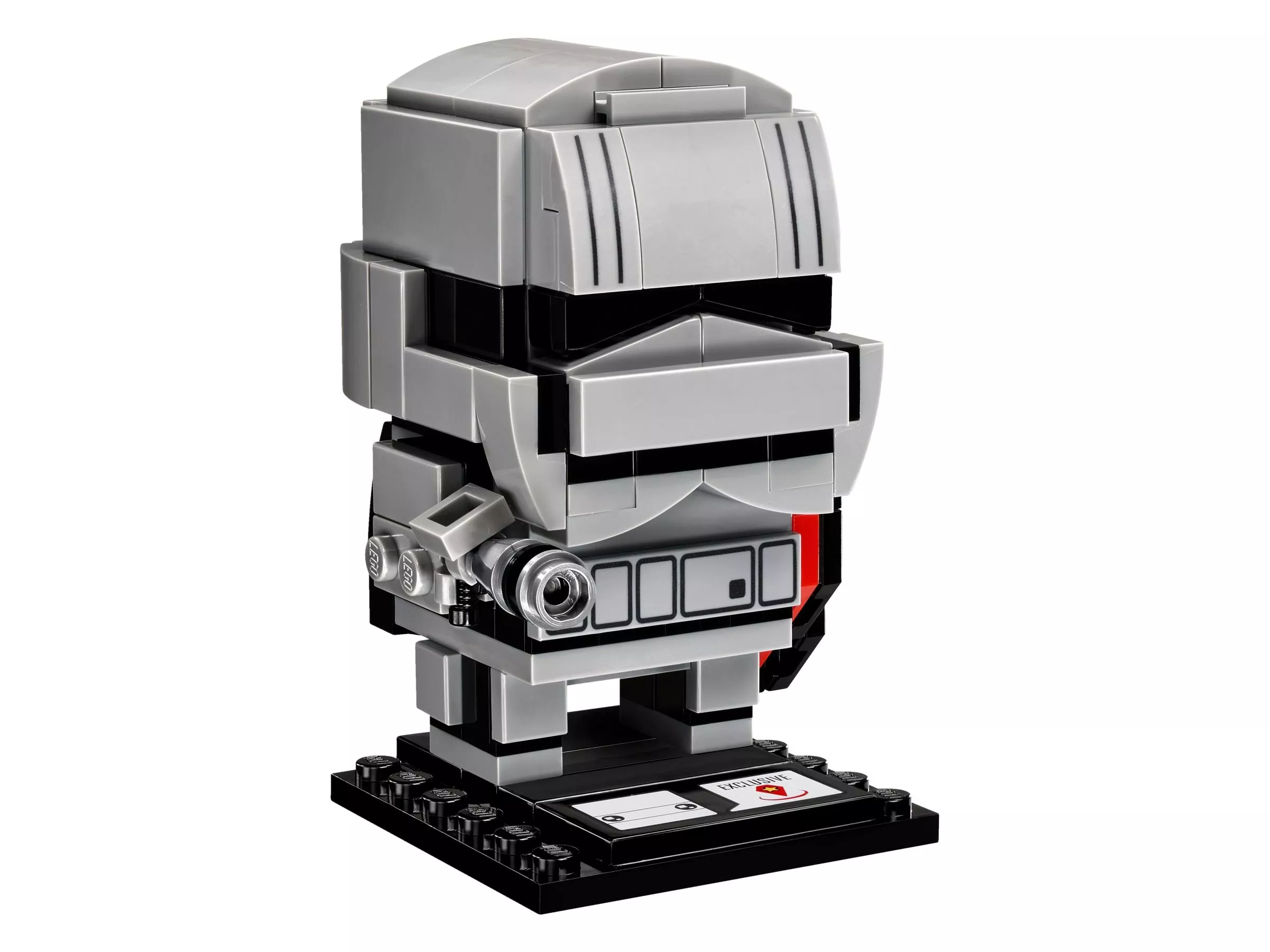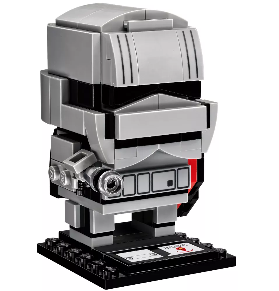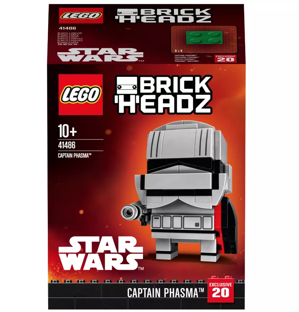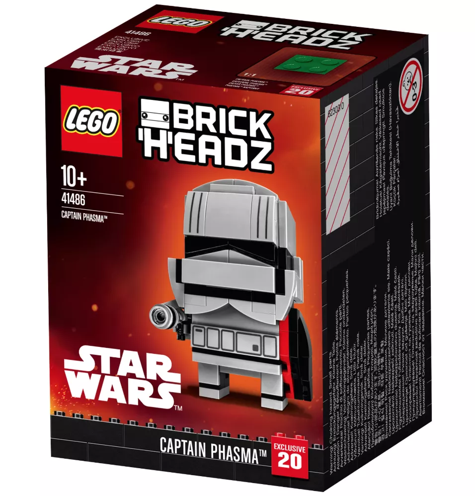 Создай свою версию капитана Фазмы из блокбастера «Звёздные войны: Пробуждение силы» с LEGO BrickHeadz. Взгляни на её броню штурмовика, шлем, специальный пояс, чёрно-красный плащ и бластерный пистолет. Затем размести командира отряда Первого ордена на базовой пластине, чтобы его увидели все твои друзья, и подави восстание Повстанцев!
