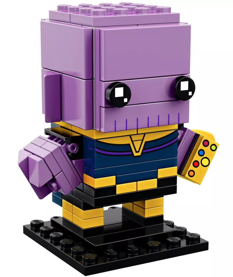 Минифигурка Таноса из серии BrickHeadz выглядит необычно благодаря угловатой форме. Но, это не мешает ей быть похожей на оригинального персонажа - у Таноса хорошо проработаны глаза, есть изображение брони и перчатка с камнями Бесконечности. Пускай ребенок собирает фигурку и придумает с ней разные игровые сюжеты. А если поставить минифигурку на демонстрационную пластину, она станет отличным дополнением к коллекции игрушек и украсит комнату.