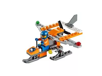 Erkunde die Geheimnisse des ewigen Eises mit dem coolen LEGO City Arktis-Mini-Flugzeug mit drehendem Propeller, verstellbaren Lichtern und Kufen.