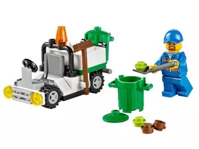 Halte LEGO City mit der klelinen Müllabfuhr sauber und ordentlich. Leere Mülleimer, fege den Bürgersteig und fahre mit dem Truck durch die Stadt.