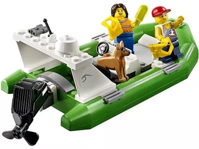 Einsatz für die Küchenwache am Leuchtturm von LEGO City! Ein Pärchen ist auf einem sinkenden Schlauchboot in Seenot geraten und ist von drei Haien umzingelt! Lasse das U-Boot vom Boot der Küstenwache ins Wasser, starte den Helikopter und eile den beiden schnell zu Hilfe. Bringe das Pärchen mithilfe der Rettungsringe in Sicherheit, indem du sie an Bord des Helikopters ziehst und die Haie mit den Wasserkanonen in die Flucht schlägst! Enthält 3 Haie und 6 Minifiguren mit Zubehör: Pilot, Kapitän, Besatzungsmitglied, Rettungsschwimmer, Mann und Frau.