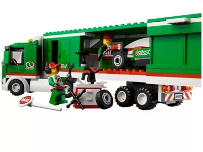 Sichere den Truck, öffnen den beweglich angebrachten Anhänger und lade den rasanten Formel-1-Rennwagen ab. Setze den Fahrer in das Cockpit und zeige im großen Straßenrennen von LEGO City, was du drauf hast! Du hast einen Platten? Kein Problem, mithilfe des Boxen-Teams und seines Werkzeugkastens hast du ihn schnell gewechselt! Danach geht's gleich wieder ab auf die Rennstrecke und in Richtung Ziellinie! Enthält 3 Minifiguren mit Zubehör: Rennfahrer und 2 Boxen-Team-Mechaniker.