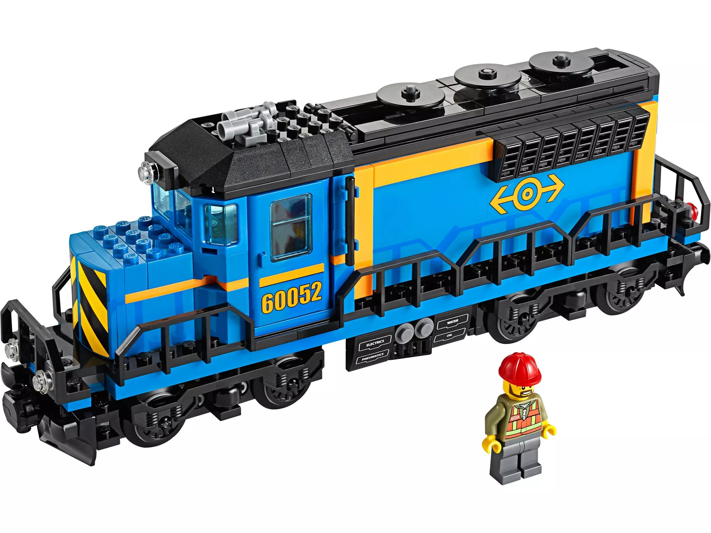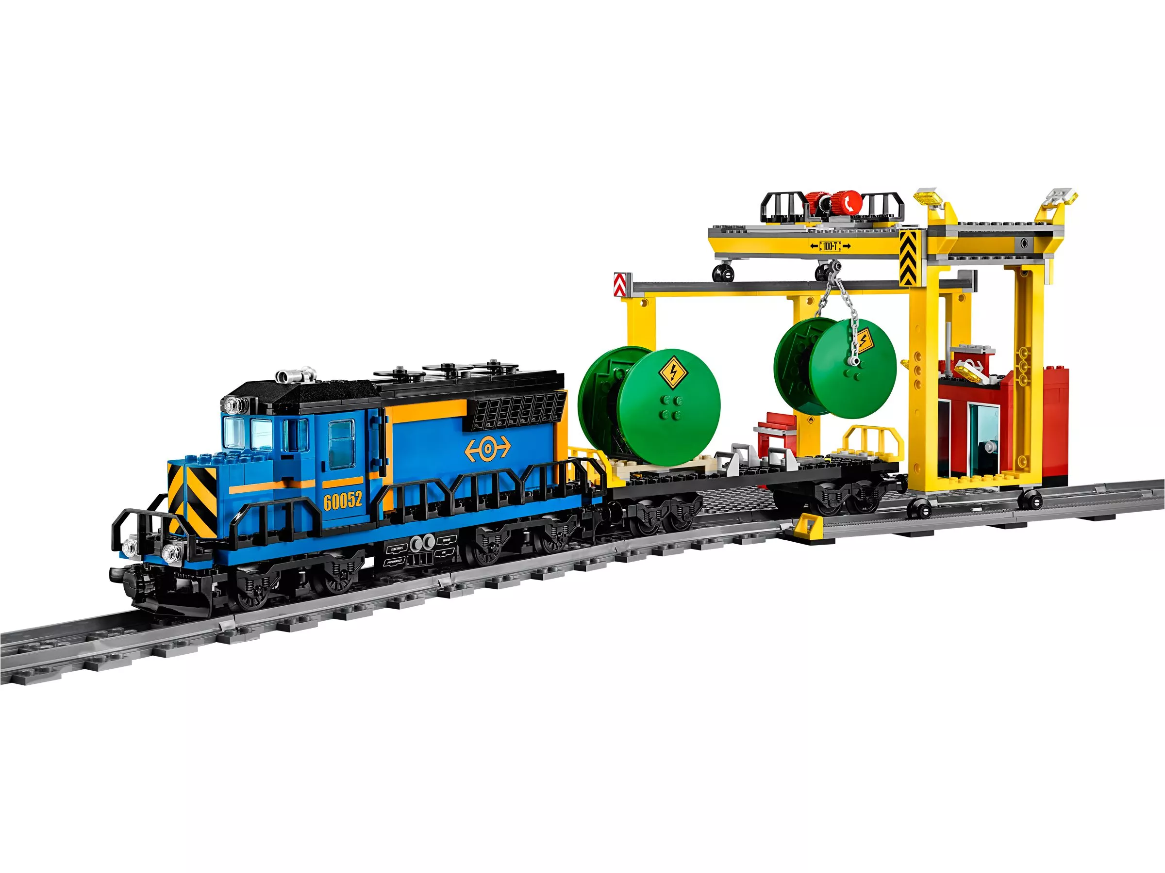 Конструктор включает в себя мощный электрический локомотив в сине-красной цветовой гамме с полноценной кабиной машиниста, три грузовых вагона различного типа: вагон для перевозки контейнеров, цистерну и платформу для перевозки тяжелой техники. Также в комплекте присутствуют детализированные минифигурки рабочих, полный набор рельсов для создания обширной трассы, и грузовая станция с подъемным краном для перемещения грузов.