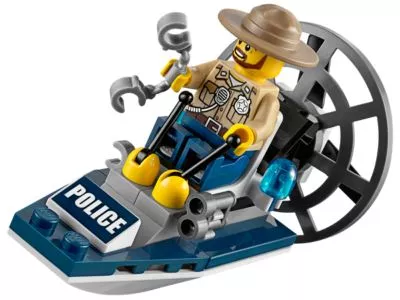 Hilfe! Die Gauner entkommen auf einem Floß voller Diebesgut und müssen unbedingt aufgehalten werden! Steig ins superschnelle Sumpfboot, lass die Motoren an und nimm die Verfolgung auf! Aber hüte dich vor dem hungrigen Alligator, der im Sumpf lauert! Enthält 4 Minifiguren mit passender Ausrüstung: 2 Polizisten und 2 Ganoven.