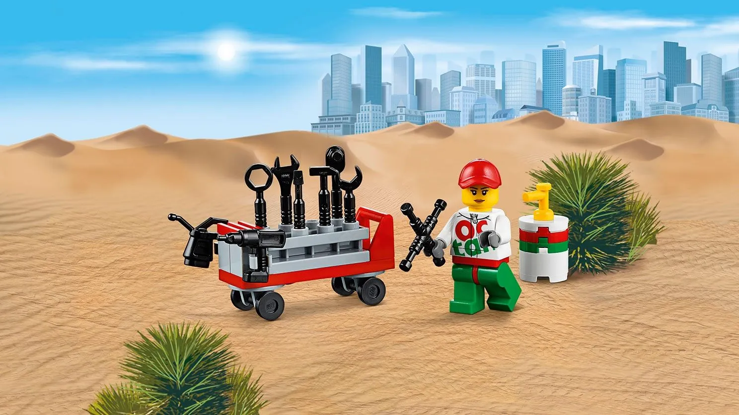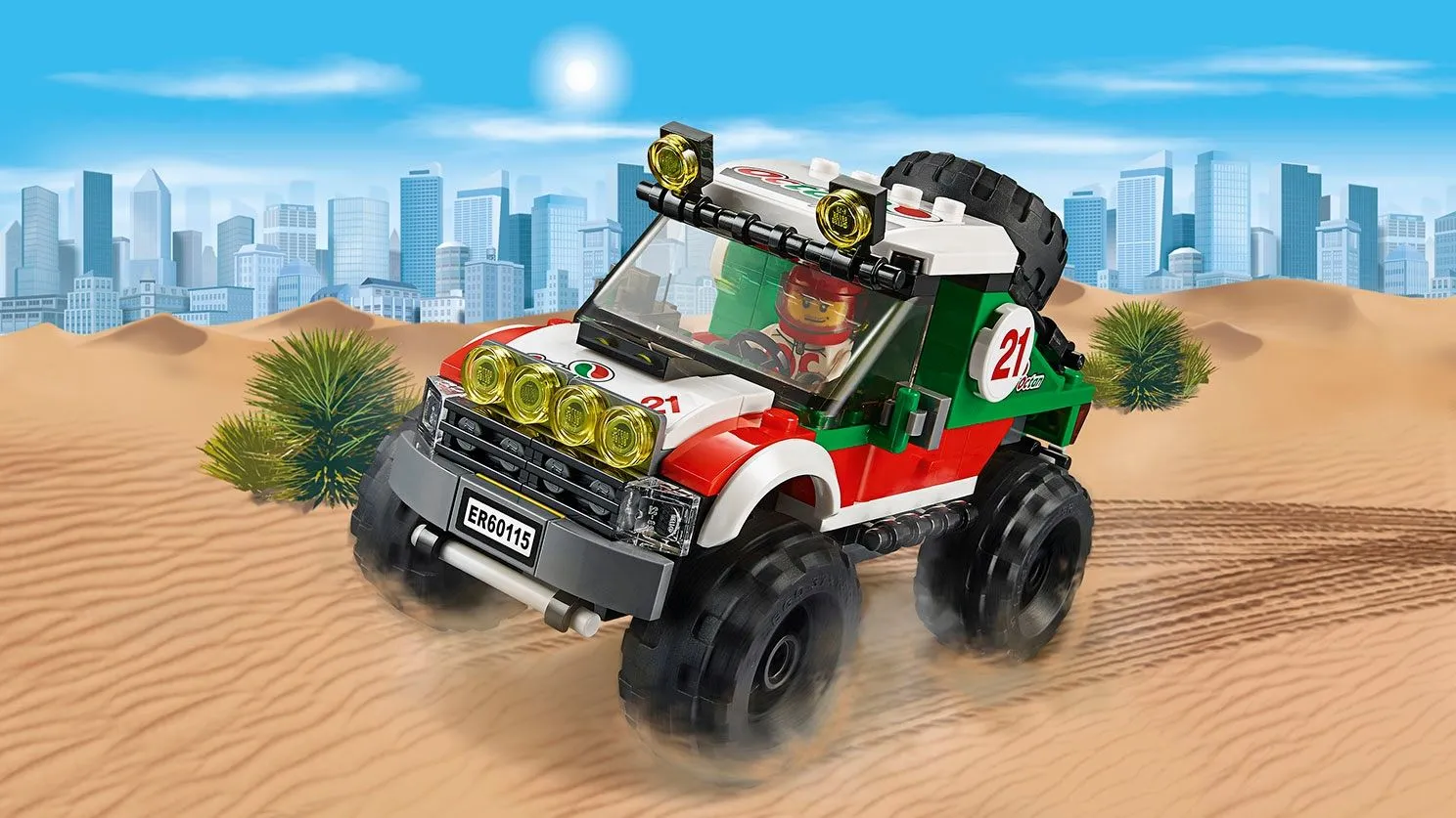 Внедорожник LEGO CITY 60115 оснащен большими колесами и мощной подвеской, что позволяет ему преодолевать любые препятствия. В набор также входит прицеп для перевозки запасного колеса и инструментов, что делает игру еще более реалистичной и захватывающей.