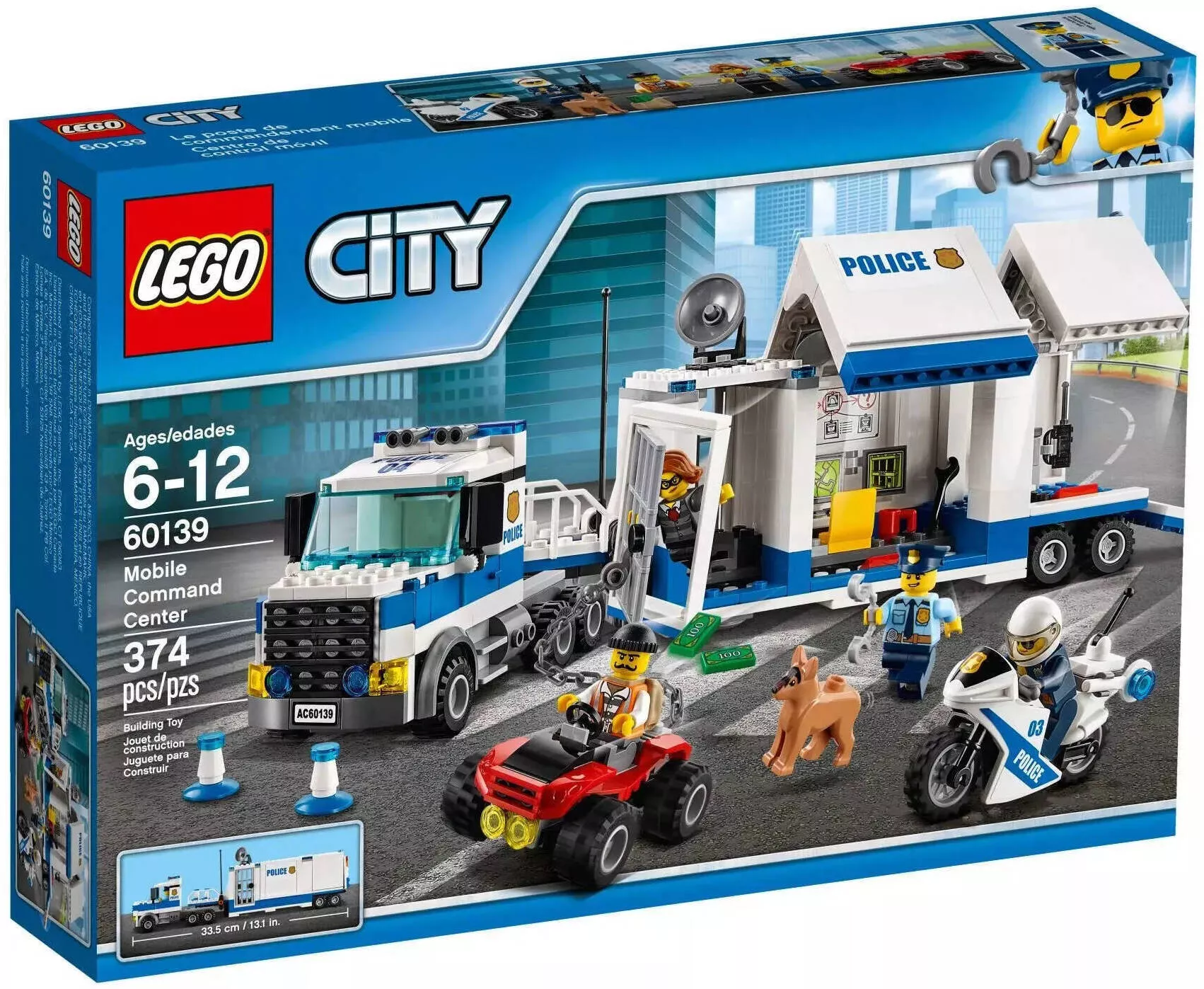 LEGO CITY 60139 Мобильный командный центр – это захватывающий набор, который позволит вам стать частью полицейского подразделения и организовать ловлю преступников прямо на месте событий. Управляйте мощным мобильным командным центром и координируйте действия своей команды для поддержания порядка в городе.