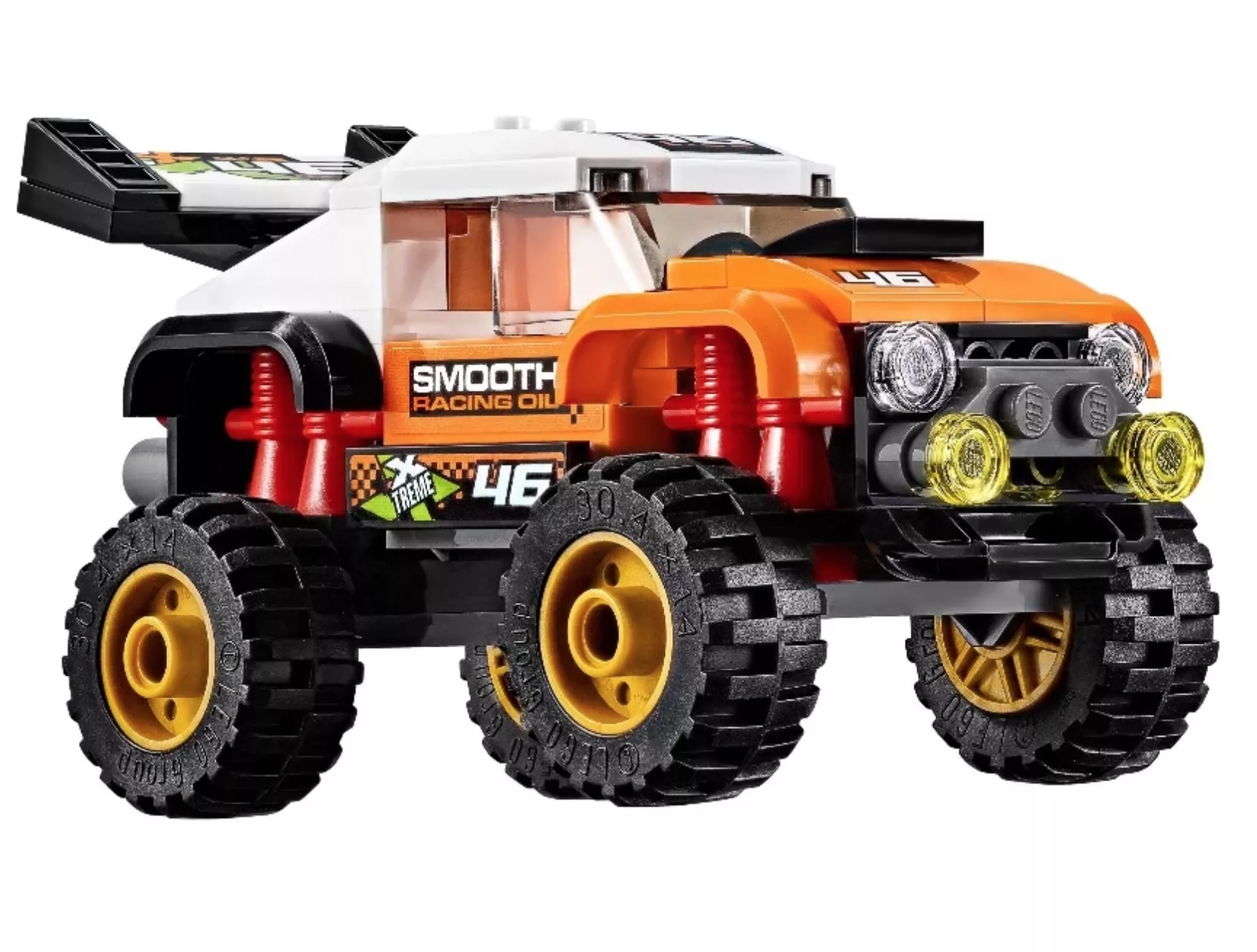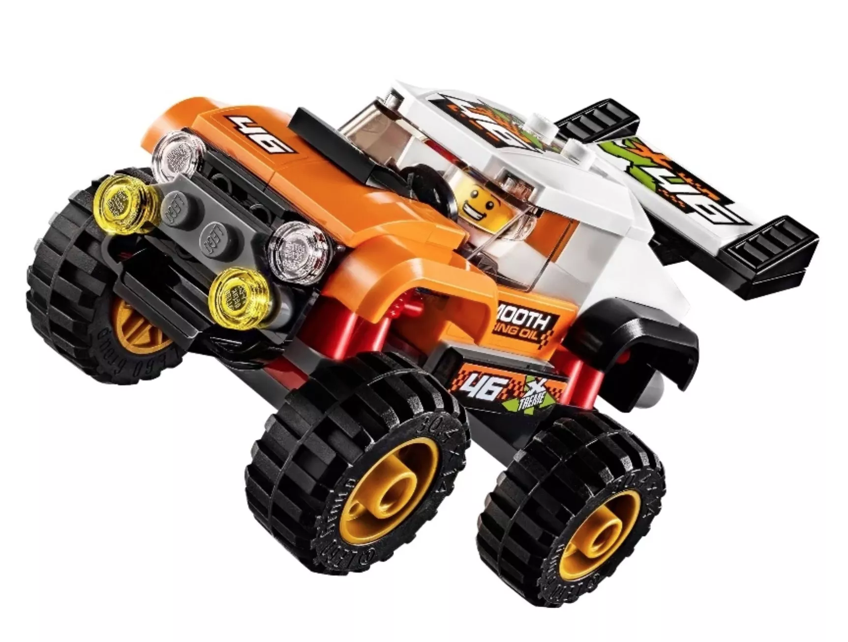 С новым набором от LEGO “Внедорожник каскадера” можно устраивать крутые гонки и выделывать умопомрачительные трюки. Собери мощный джип в спортивном стиле и укрась его яркими наклейками. Посади водителя за руль — и вперед! Большой задний спойлер можно поднимать и опускать, он придает маневренности авто. Огромные колеса легко преодолеют любые препятствия. Кабина водителя закрыта прозрачным стеклом, внутри сиденье и руль. Чтобы посадить водителя на это место, нужно открыть крышу авто. Набор станет прекрасным подарком и для коллекционеров LEGO, и для любителей гоночных автомобилей.