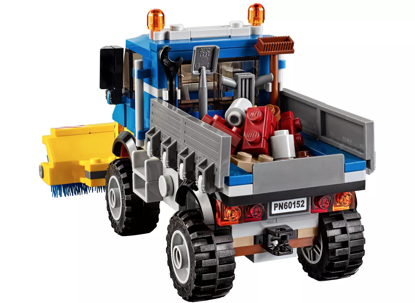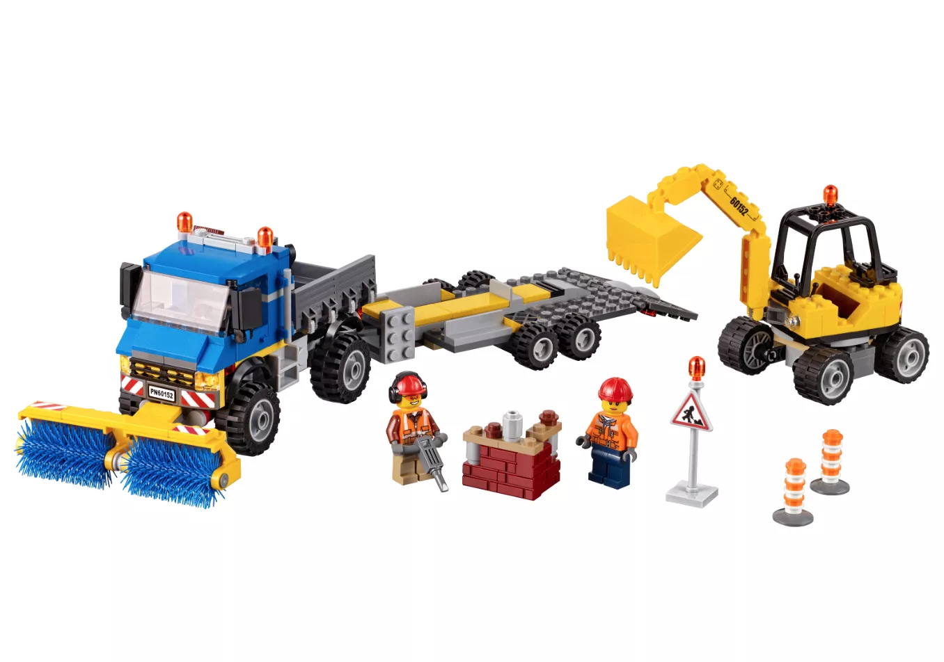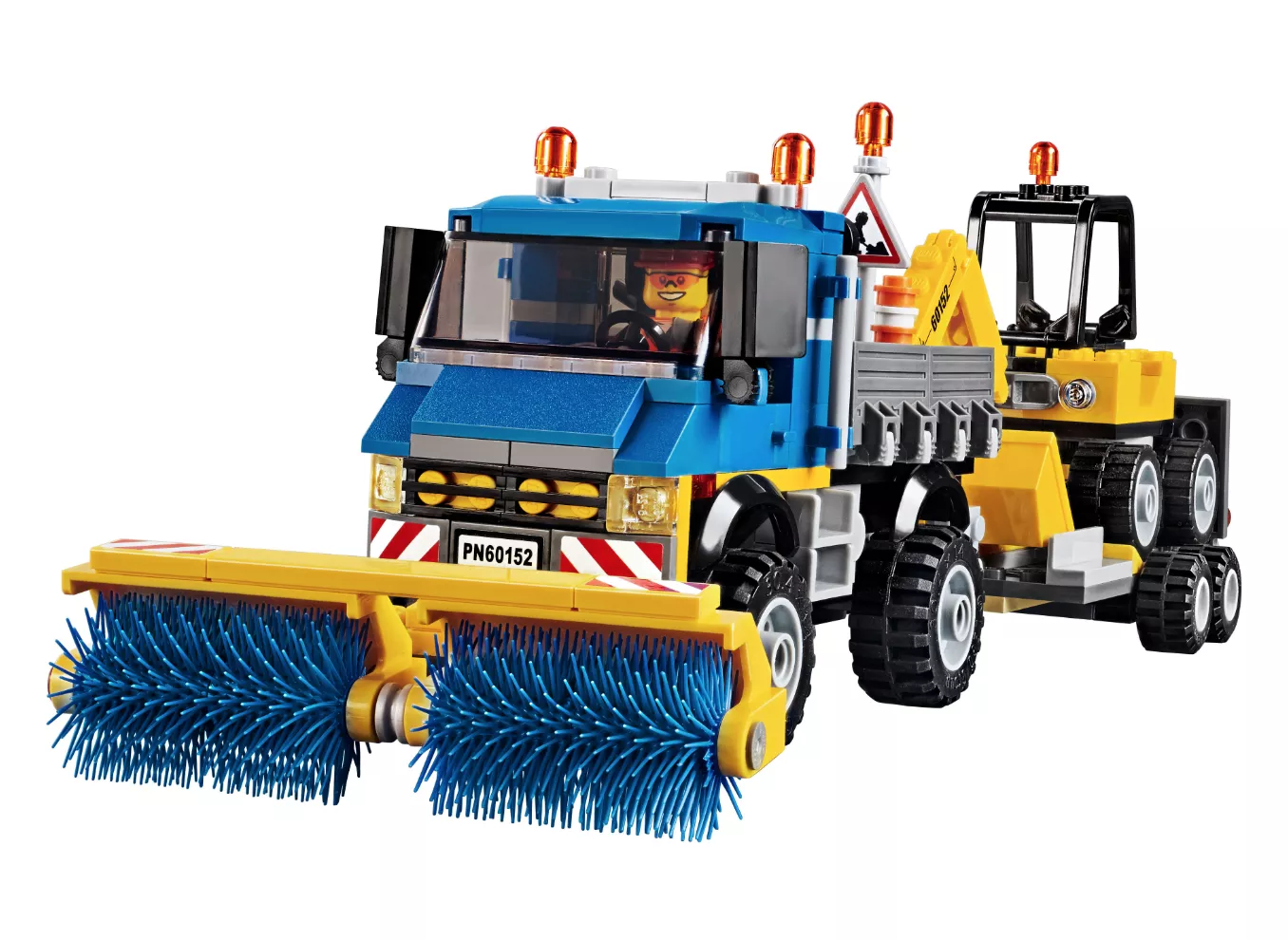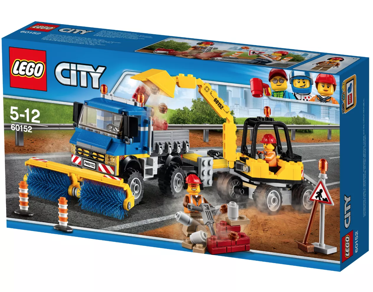 В LEGO City всегда чисто и аккуратно. За этим следит бригада рабочих, которые поддерживают порядок с помощью уборочной техники и инструментов. Посмотри, как быстро они справятся со строительным мусором, оставшимся на дороге. Уборочная машина с прицепом доставит экскаватор на место. Отбойным молотком работник быстро разобьет кирпичи и экскаватором погрузит мусор в кузов. Остатки грузовик уберет большими навесными щетками, а пыль можно смести метлой. Улица снова сияет чистотой! Набор “Уборочная техника” надолго увлечет ребенка. С его помощью можно разыгрывать интересные сценки из жизни обитателей LEGO City.