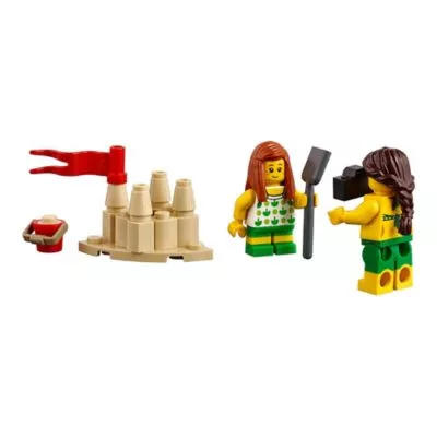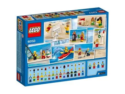 Пополните население LEGO City новыми персонажами! С наступлением летнего сезона в город приехало множество туристов. Играйте в волейбол или займитесь виндсерфингом, пока маленькая девочка строит песочный замок, а бабушка покупает ей мороженое. Загорайте, слушайте музыку, отдохните в гамаке или отправьтесь на прогулку на байдарках. Возможно, именно сегодня аквалангисту удастся поймать рыбку, золотоискателю — найти сокровище, а отдыхающим — увидеть игривого дельфина. Обязательно следите с вышки спасателей за обстановкой на пляже и на воде, чтобы никто не пострадал, а также за чистотой побережья!