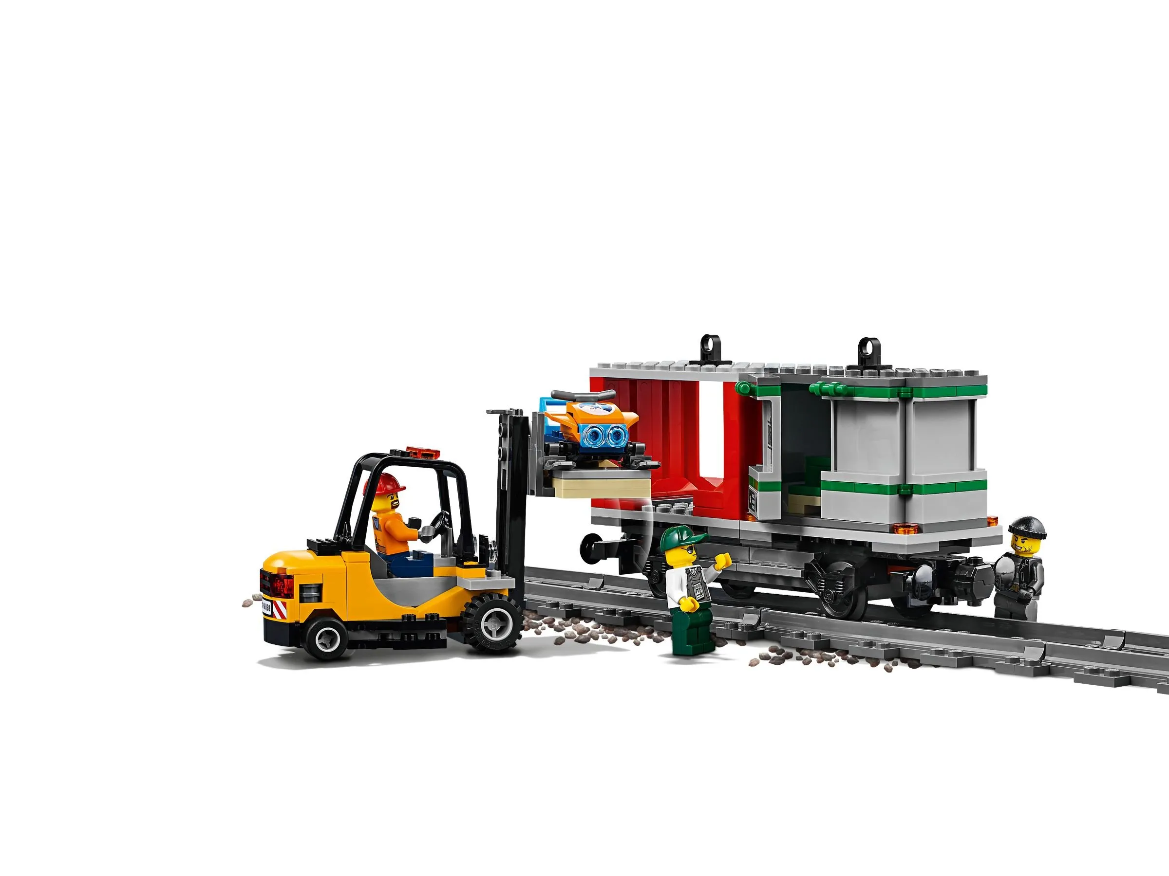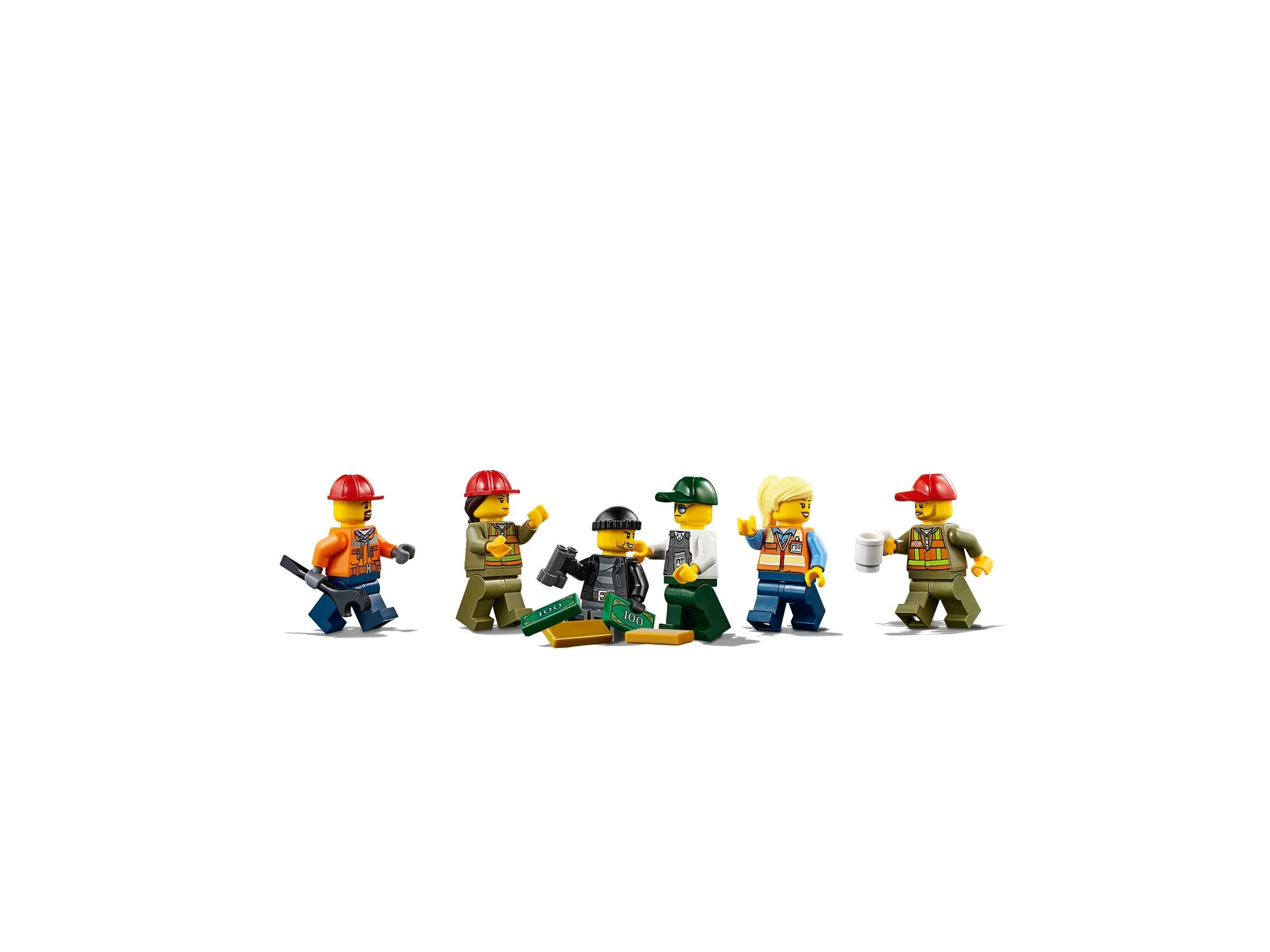 Этот набор включает в себя 1226 деталей, из которых можно построить поезд, краны и платформы, а также железнодорожные пути общей длиной более 2 метров. В комплект также входят 6 минифигурок – машинисты, рабочие и охранники, что позволяет разыгрывать различные сценарии и задачи по перевозке грузов. Минифигурки оснащены разнообразными аксессуарами, такими как рации, инструменты и даже собака охранника.