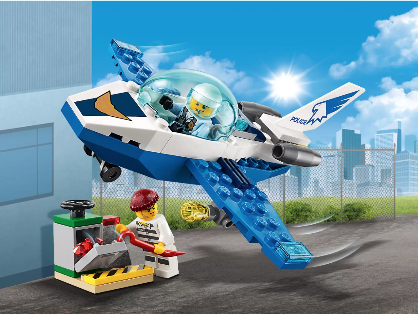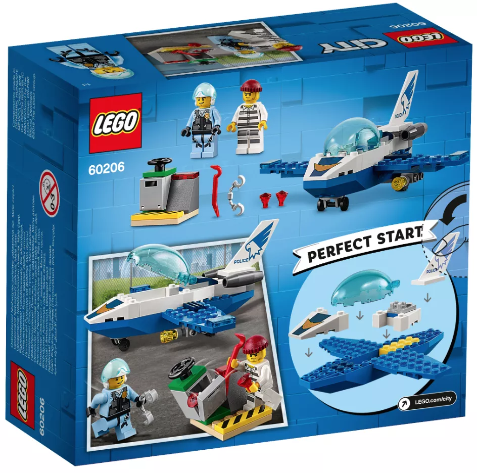 Стать частью спасательной команды можно вместе с конструктором LEGO City Police 60206 "Воздушная полиция: патрульный самолет". Помогай жителям города в трудной ситуации, выслеживай нарушителей и устраивай за ними погони. Набор LEGO дает возможность увлекательно провести свое время. Ребенок сможет придумывать различные истории и сюжетные линии с полицейскими, или просто играть с друзьями. Детский самолет прекрасно разрабатывает мелкую моторику, а также развивает фантазию и воображение.