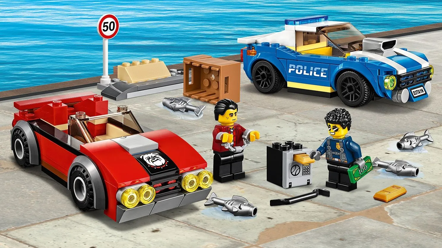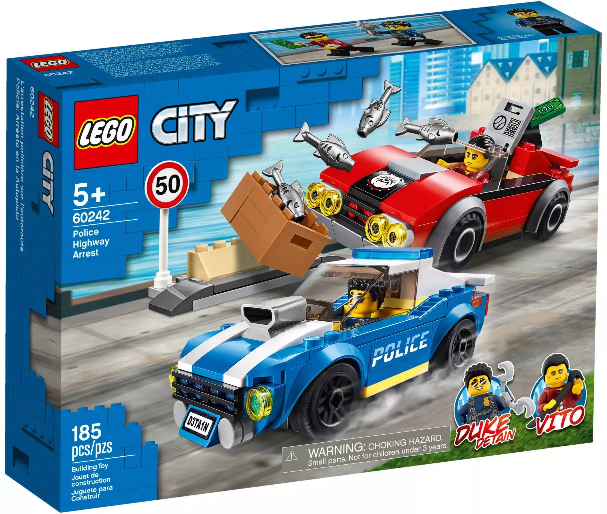 Набор LEGO CITY 60242 Арест на шоссе состоит из 185 деталей, что делает его сборку быстрой и увлекательной. Он включает в себя полицейскую машину и спортивный автомобиль преступника, а также фигурки, которые добавляют реалистичности и позволяют воссоздать захватывающие сцены погони.