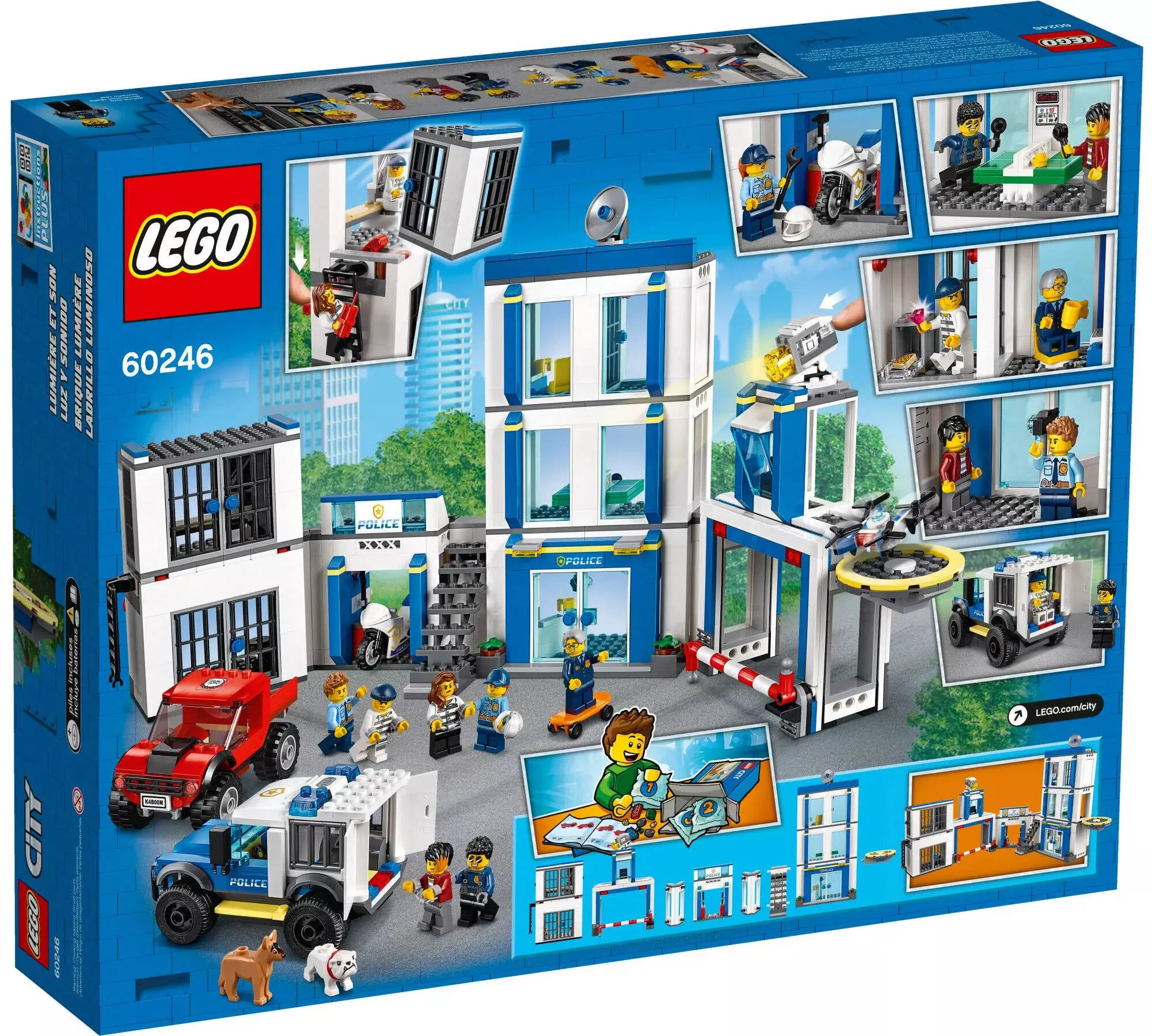 Набор 60246 включает в себя многоэтажное здание полицейского участка, оборудованное офисами, камерами для задержанных и даже вертолетной площадкой на крыше. Дополнительно в комплекте присутствуют полицейская машина, мотоцикл, и вертолет, которые добавляют динамичности игровому процессу. Важной особенностью является также наличие фигурок полицейских и преступников, что позволяет сыграть в захватывающее противостояние добра и зла.
