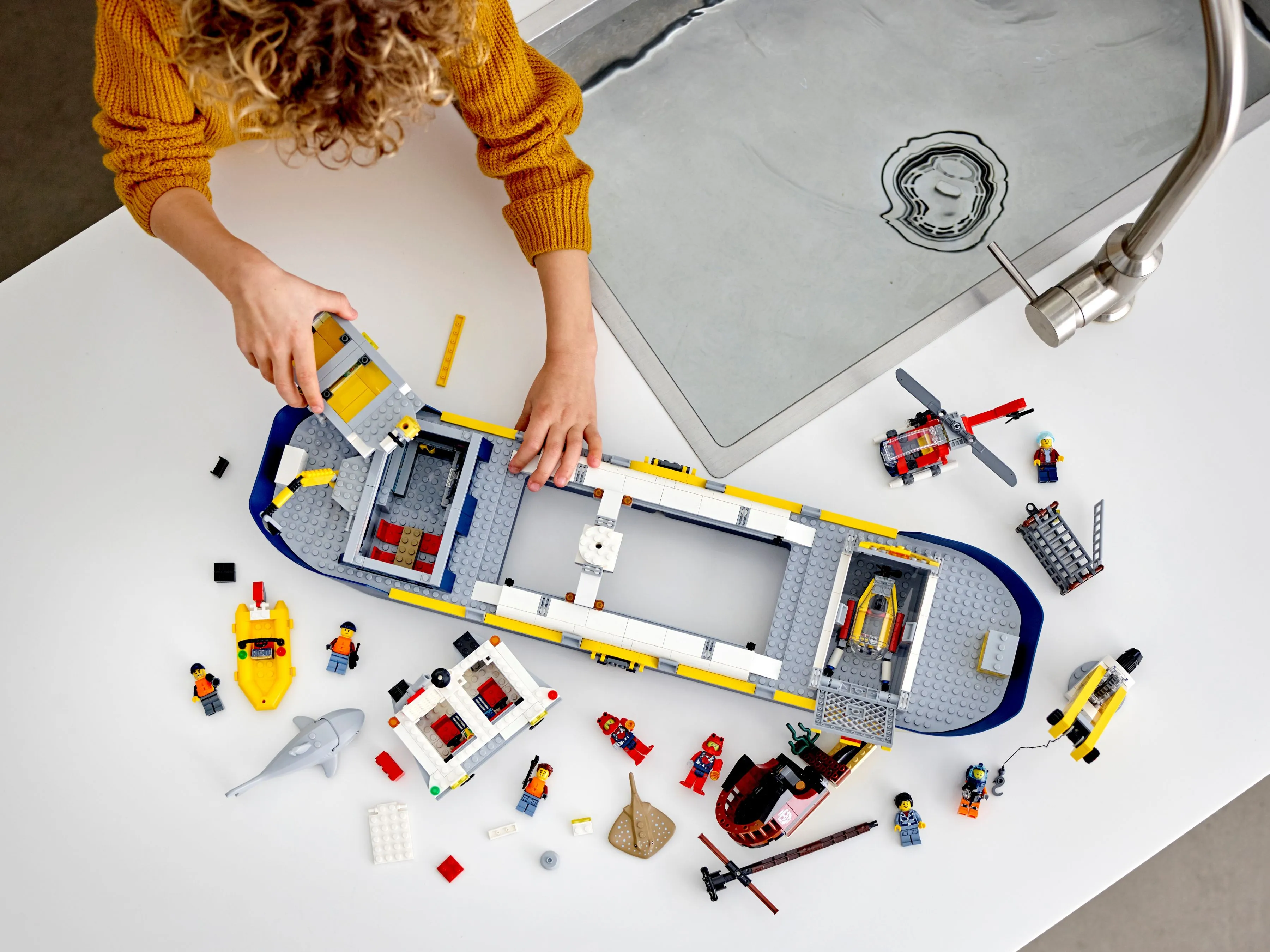 С набором Океан: исследовательское судно дети смогут собрать детализированную модель исследовательского судна, оснащенного всем необходимым для проведения научных экспедиций. Набор включает в себя не только само судно, но и множество аксессуаров, которые сделают игру еще более увлекательной.