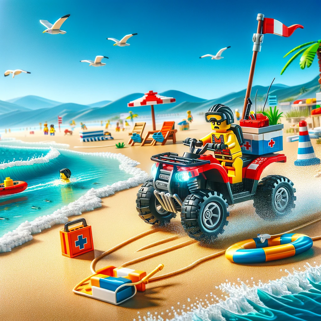 Возьмите на себя роль спасателя и отправляйтесь на квадроцикле по песчаным дюнам, чтобы прийти на помощь нуждающимся. Этот набор позволяет детям развивать способности к решению задач и креативное мышление, вживаясь в роль настоящих спасателей.