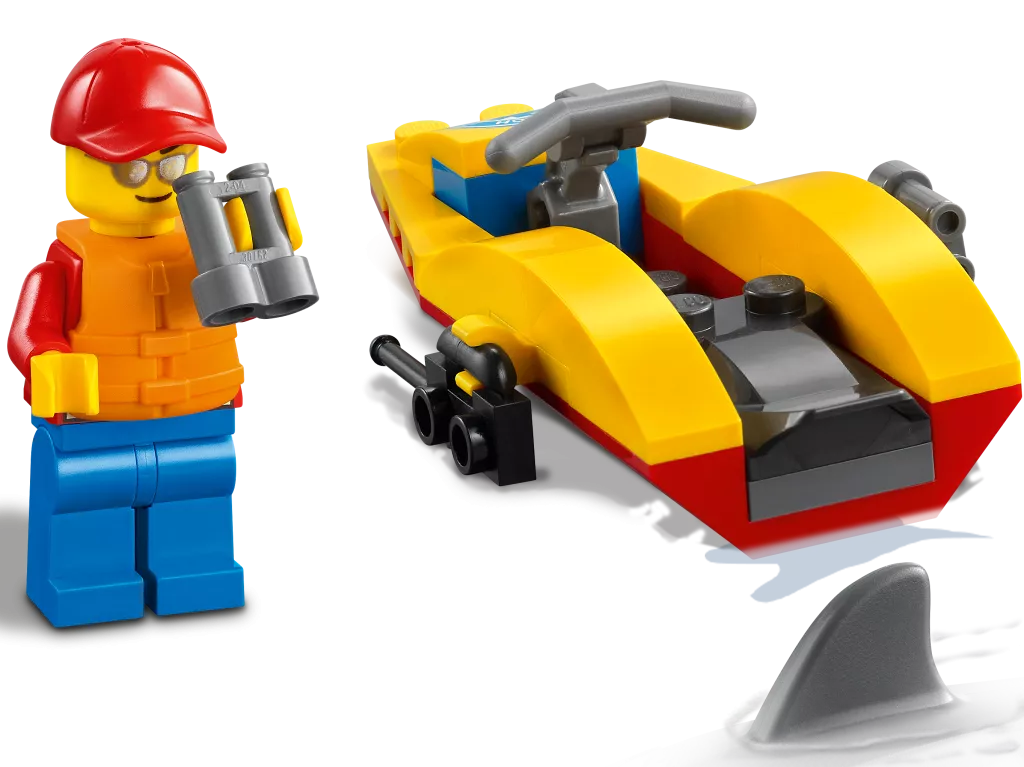 Окунитесь в мир, где каждый новый день приносит шанс стать настоящим героем спасательных операций на пляже с набором LEGO City 60286. В комплекте представлен квадроцикл с механизмом открытия защитной рамы и прицепом для транспортировки водного мотоцикла. Комплект дополняют мини-фигурка спасателя и фигурка акулы, обогащающие игровой процесс деталями реальности.