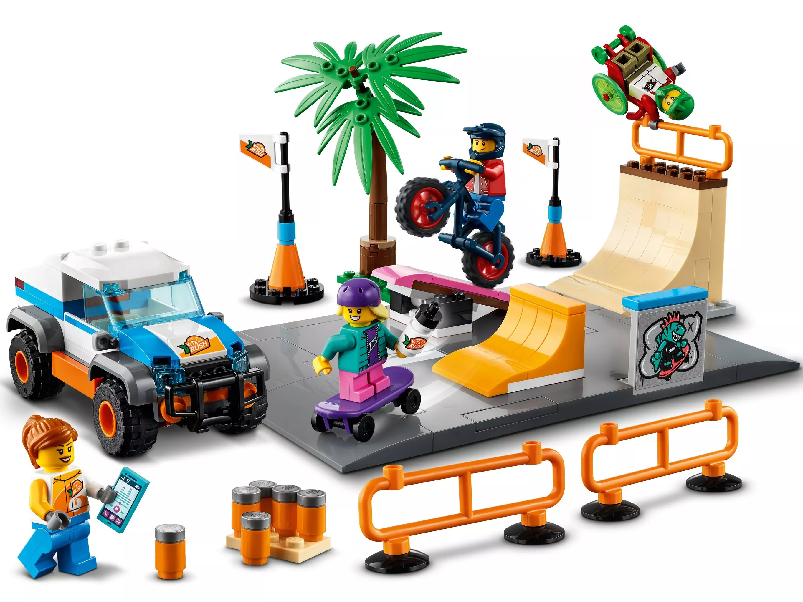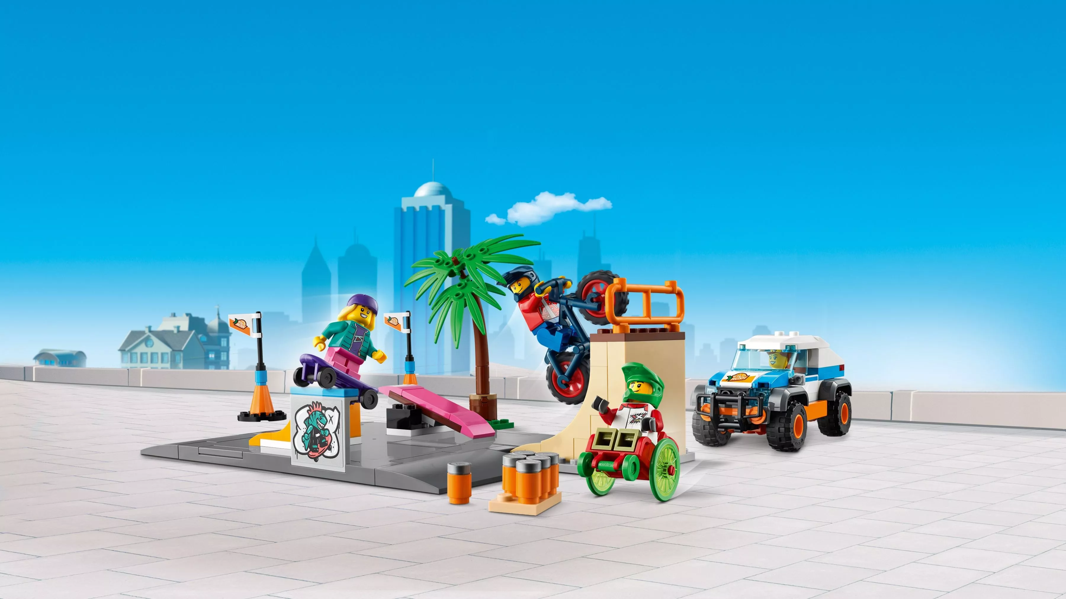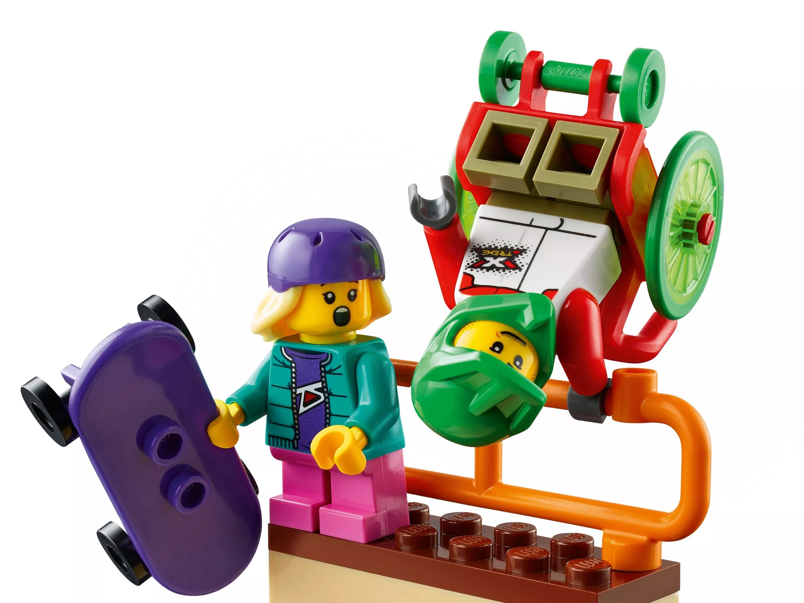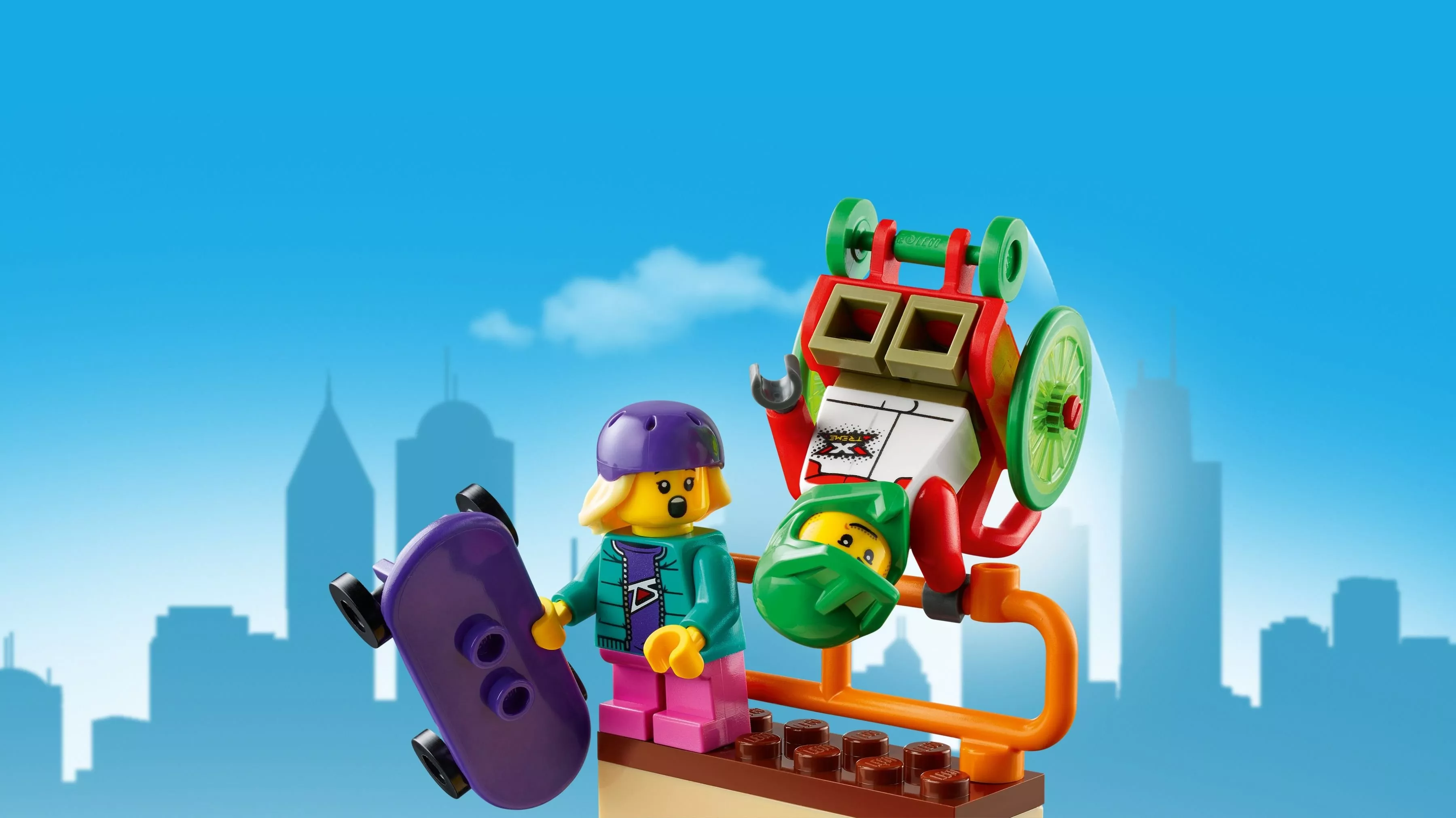 Устройте захватывающие состязания на скейтах вместе с конструктором LEGO City Community 60290 «Скейт-парк». Опытные скейтеры уже давно ждут момента, когда смогут показать все, на что способны. Спортсмены уже перекрыли дорогу для соревнований и раздали бесплатные банки с газировкой из кузова пикапа. В состязаниях участвуют все: велосипедист хвастается невероятной балансировкой на качелях, а спортсмен в инвалидном кресле делает головокружительные трюки в четверти трубы. Небольшой игровой набор будет лучшим подарком на Новый год ребенку старше 5 лет.