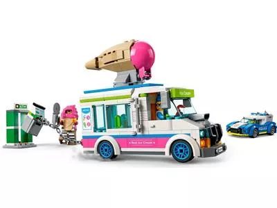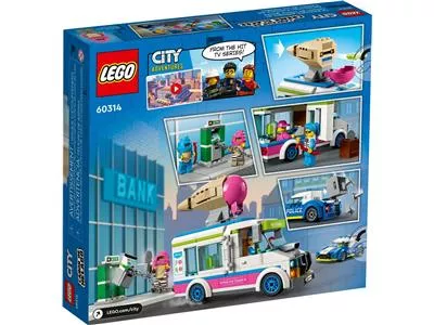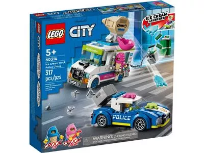 Дети могут создавать сцены из телесериала LEGO City Adventures с помощью этого игрового набора LEGO City «Полицейская погоня на грузовике с мороженым» (60314), в который входит специально изготовленный мошенником грузовик с мороженым и пусковой установкой, а также крутой полицейский автомобиль-перехватчик в комплекте с шиномонтажный диспенсер. Просто добавьте двух отъявленных жуликов-мороженщиков и минифигурки полицейских, и вы получите часы захватывающей игры.