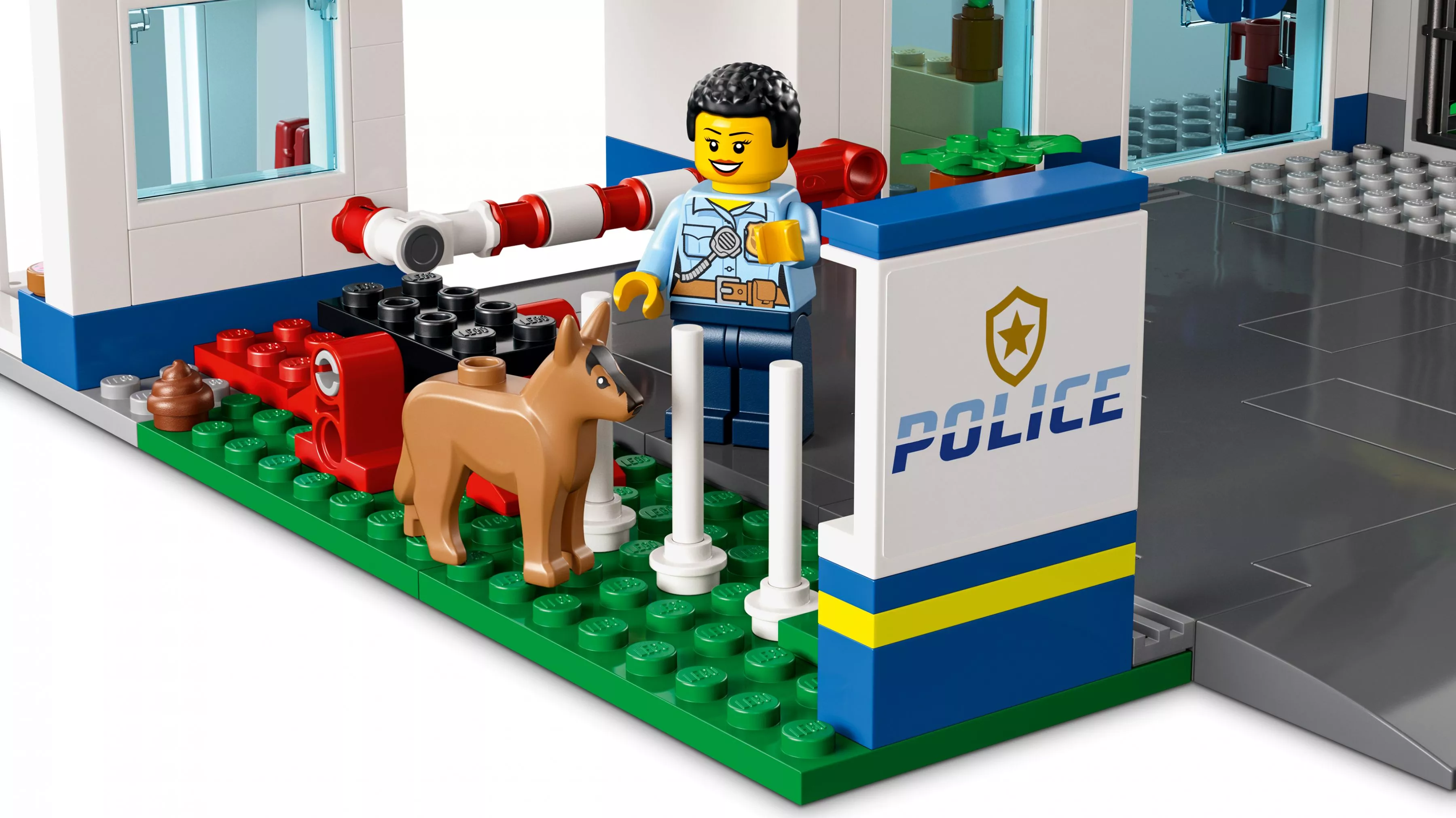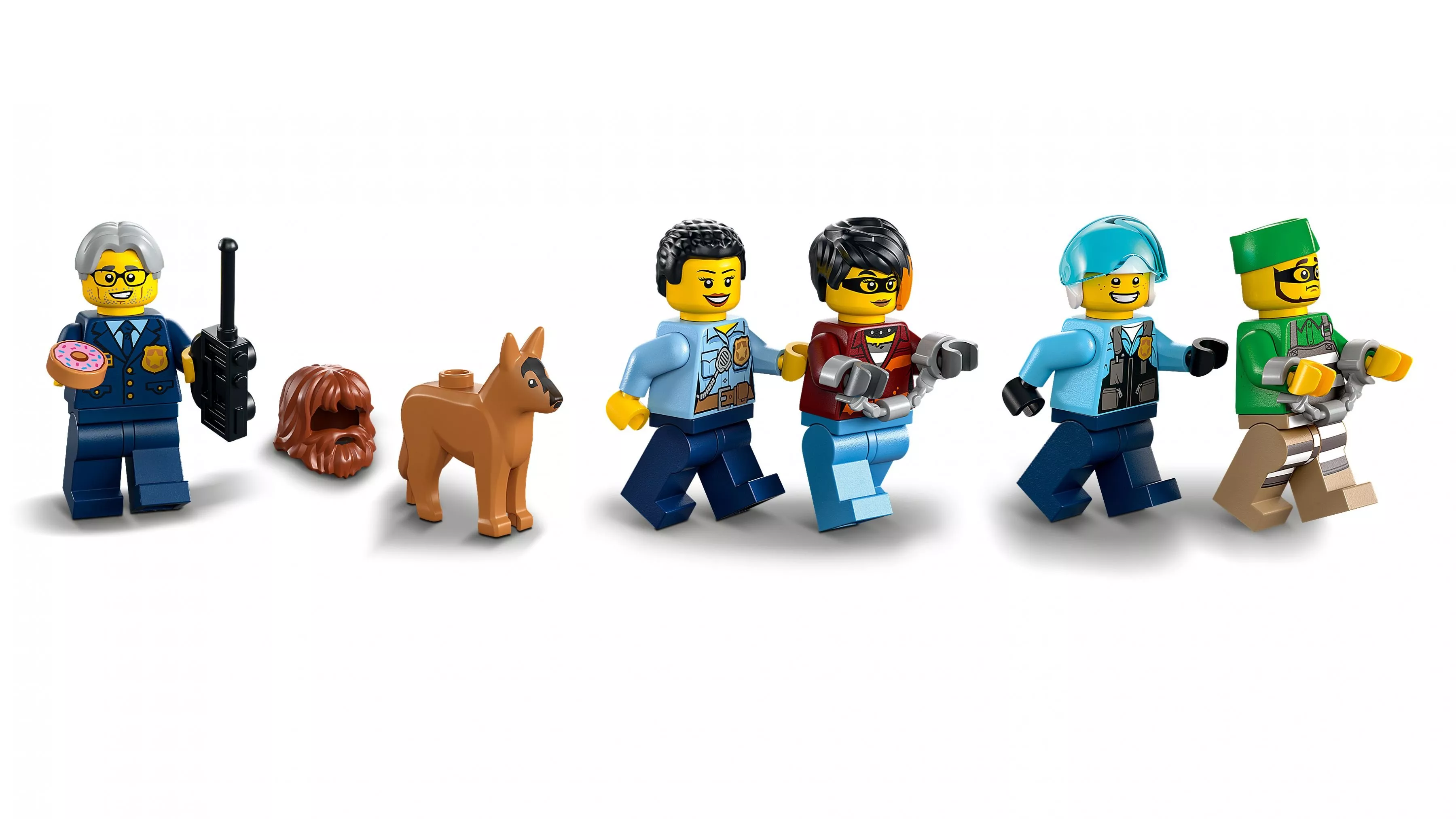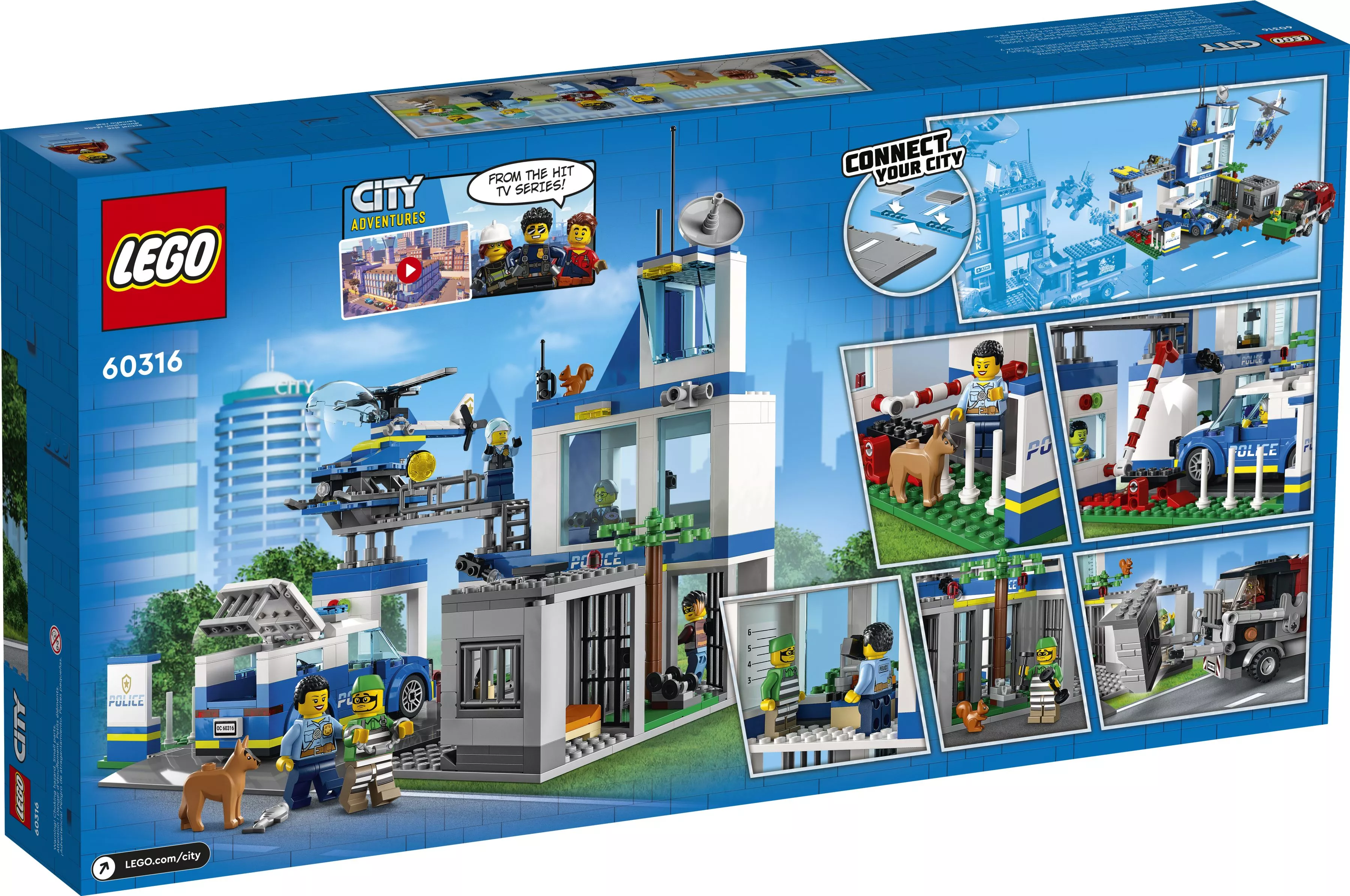 В полицейском участке города LEGO City идет обычный спокойный день. Шеф Уилер и Аллен тренируют полицейскую собаку на полосе препятствий, а пойманный воришка прогуливается по тюремному дворику. И вдруг... ВРУМ! Это Дейзи Кабум на своем переделанном мусоровозе! Тюремная стена с грохотом рушится, и преступник убегает! Поднимайте вертолет и полицейский перехватчик и отправляйтесь в погоню!