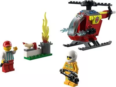 Lego City «Пожарный вертолёт» - миниатюрный, но многофункциональный набор. Состоит из вертолета с грузовым отсеком и вращающимися винтами, а также же двух минифигурок персонажей и мангальной зоны с огнем.