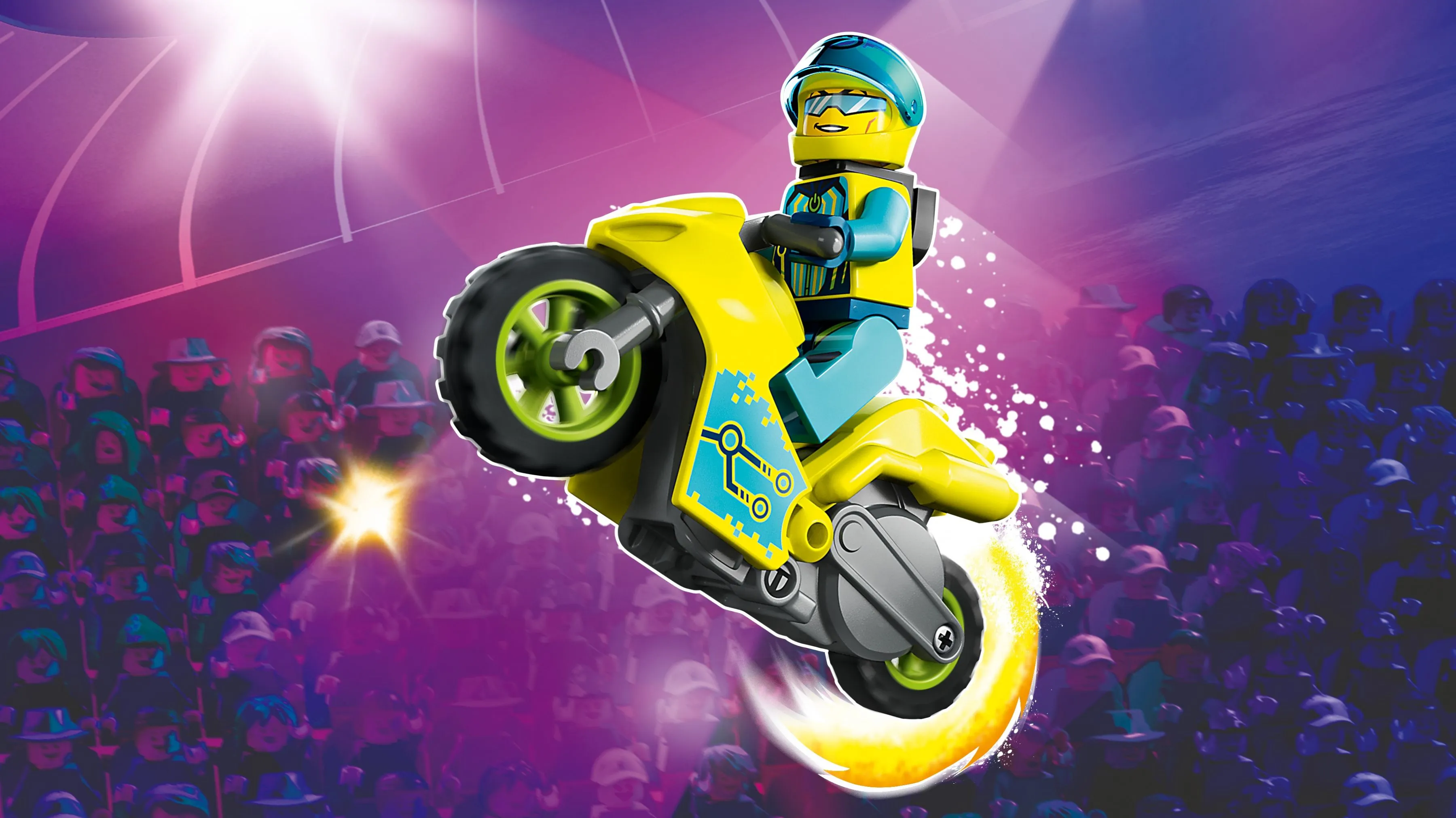 LEGO CITY 60358 Кибер-трюк-байк – это не просто конструктор, а целый мир высоких скоростей, трюков и киберпанковской эстетики. Набор позволяет разыгрывать захватывающие гонки и создавать собственные маршруты для трюков, что развивает воображение и координацию.