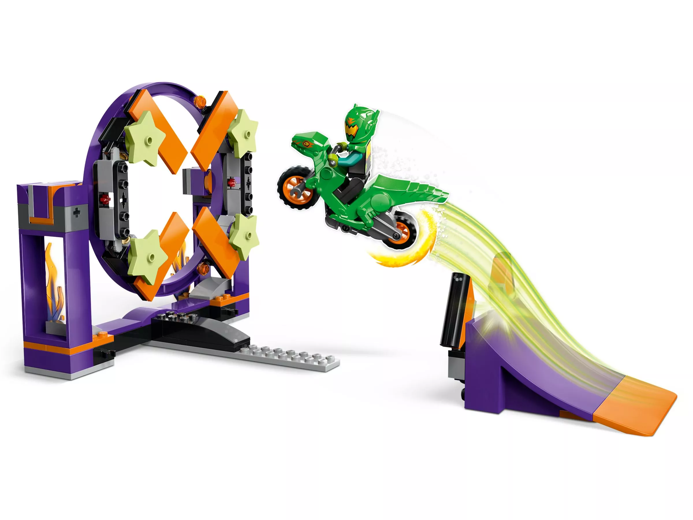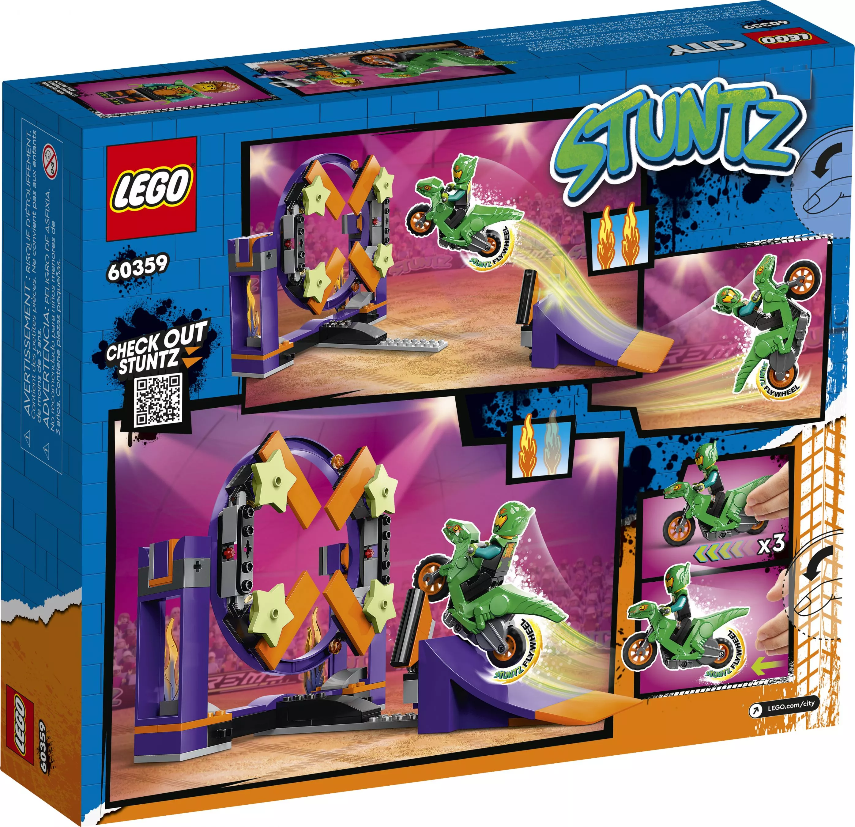 Создайте своё уникальное каскадёрское шоу, устанавливайте новые рекорды, выполняйте захватывающие прыжки через огненное кольцо и наслаждайтесь трюками с набором LEGO City 60359!