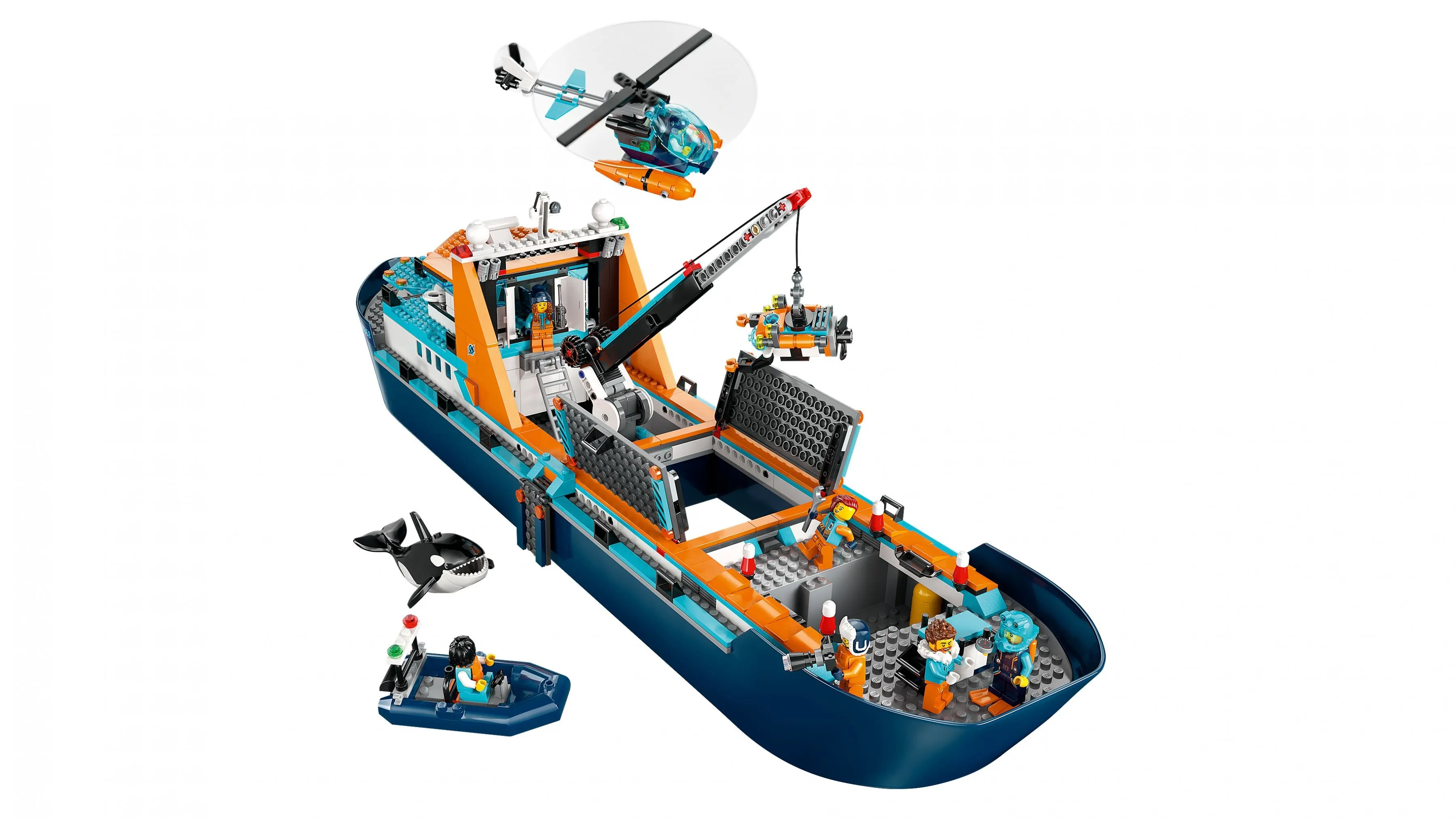 LEGO City 60368 Корабль Исследователь Арктики – это увлекательный набор, который погружает детей и взрослых в захватывающий мир арктических экспедиций. Этот набор позволяет построить крупный исследовательский корабль, предназначенный для плавания в холодных водах, а также различные транспортные средства и оборудование для изучения одного из самых экстремальных регионов планеты. Идеально подходит для поклонников приключений и исследований.