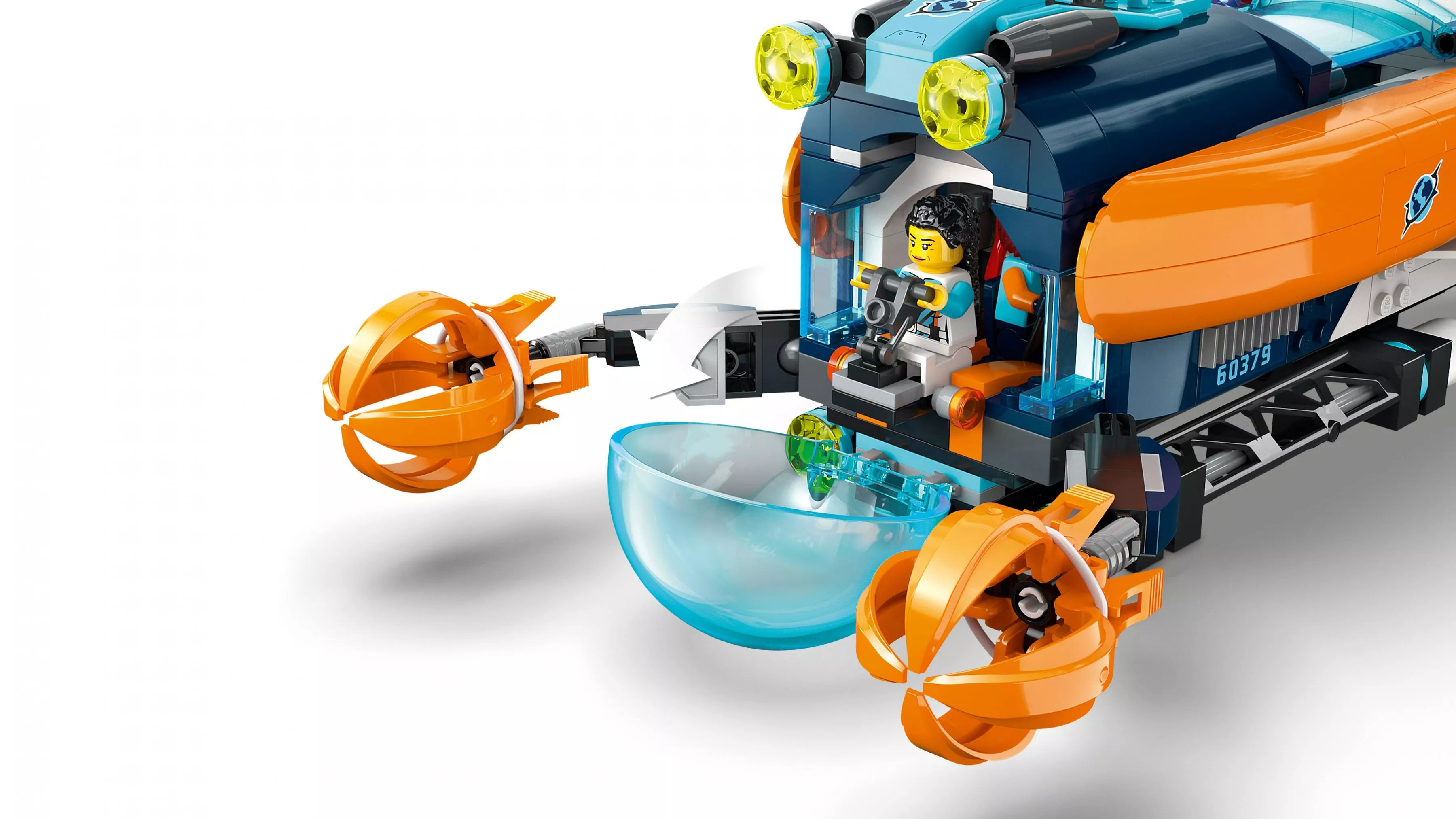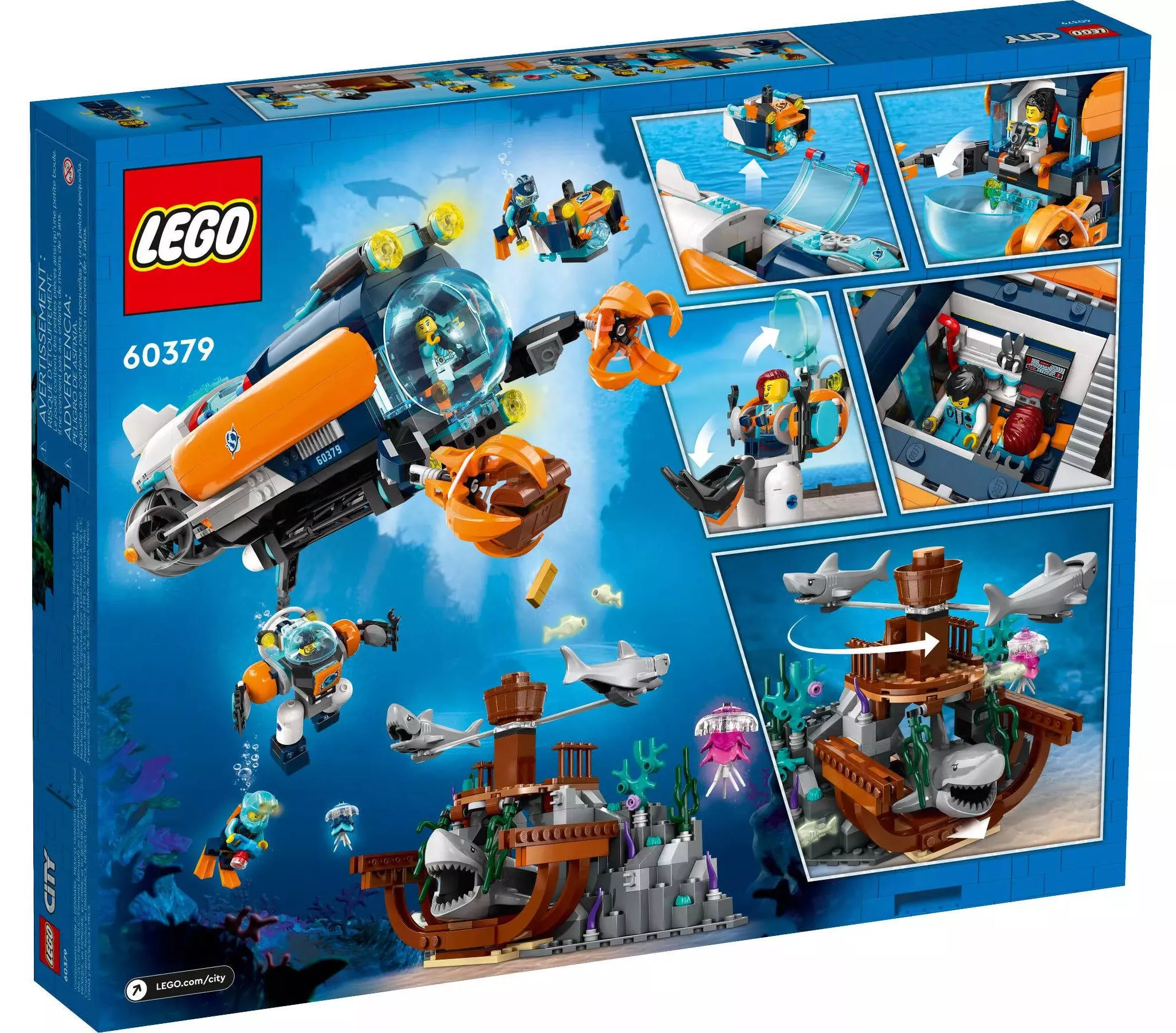 Набор LEGO City 60379 Глубоководная исследовательская подводная лодка включает в себя функциональную подводную лодку с множеством подвижных элементов и аксессуаров, что делает игровой процесс разнообразным и увлекательным. Вы сможете проводить спасательные операции, исследовать затонувшие объекты и даже обнаруживать морских существ на океанском дне.