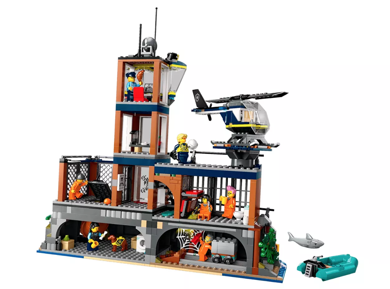 Набор LEGO City «Полицейский тюремный остров» (60419) — дом самых отъявленных воров города, но у них другие планы! Вас ждут захватывающие приключения, тюрьма на скале, оснащенная множеством функций и возможностей, а также полицейский катер, шлюпка, 3 минифигурки полицейских, 4 заключенных, фигурки полицейской собаки и акулы.