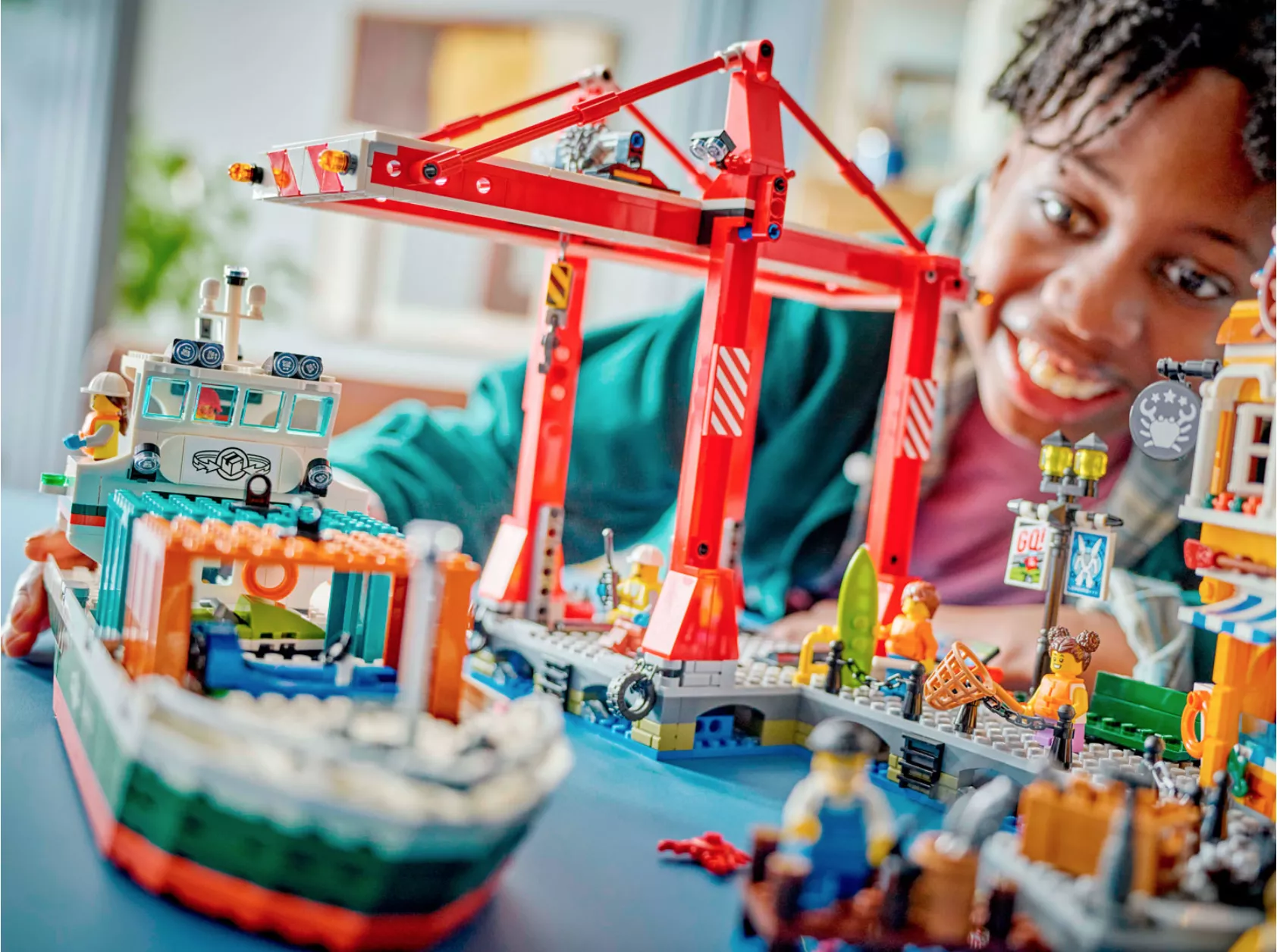 Дети от 8 лет и старше смогут насладиться множеством приключений, играя с набором LEGO CITY «Морской порт с грузовым судном» (60422). Воспользуйтесь краном, чтобы поднимать контейнеры с корабля, насладитесь туристической зоной с магазином, рестораном морепродуктов и пляжем. В набор также входят катамаран, водный скутер, а также 8 минифигурок для веселого сюжета. Благодаря наборам LEGO City в распоряжении детей есть крутые транспортные средства, реалистичные здания и интересные персонажи, которые вдохновляют на неограниченные игры. А для еще большего удовольствия вы можете объединить этот набор с другими наборами из серии City (продаются отдельно).