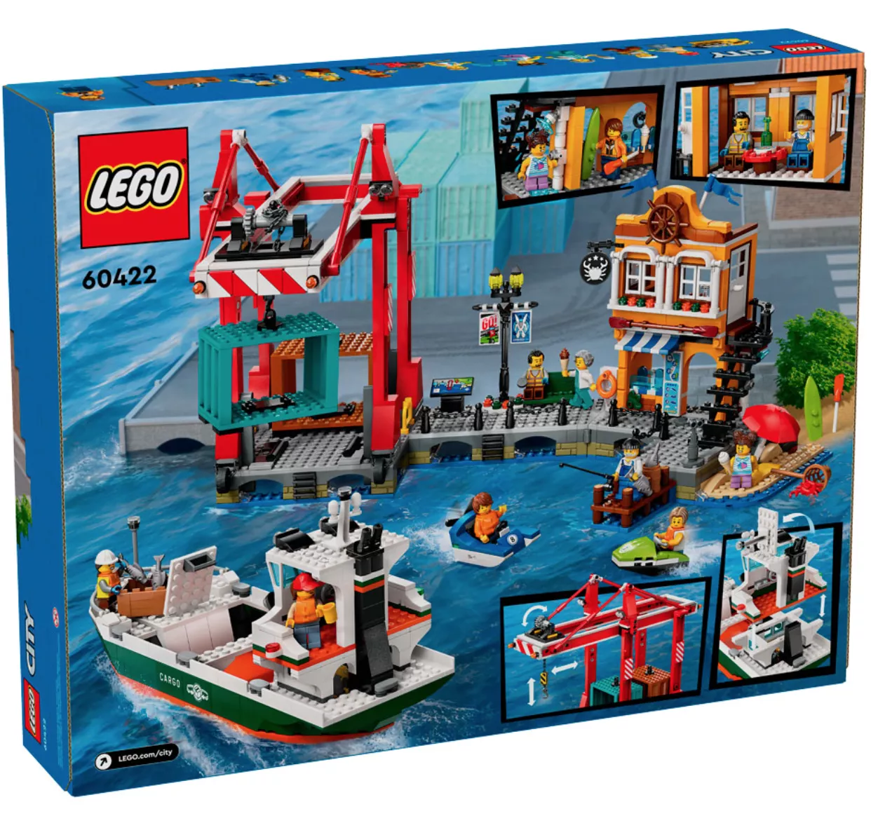 • Набор LEGO CITY «Морской порт с грузовым судном» (60422) наполнен забавными особенностями и функциями, позволяющими часами весело играть.