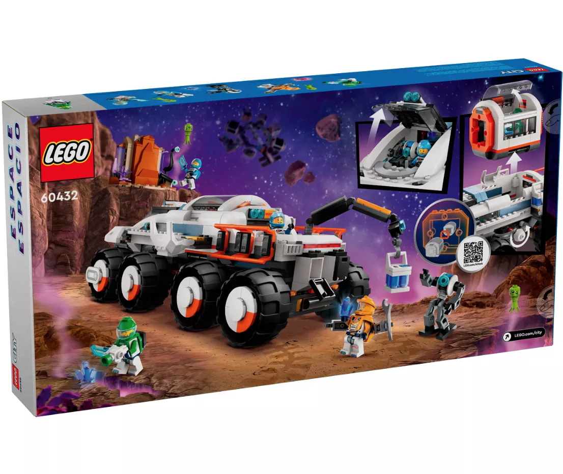 Заложите основу для исследования планет с помощью конструктора LEGO City «Командный вездеход и кран-погрузчик» (60432) для детей от 7 лет. В этом футуристическом 8-колесном транспортном средстве есть все необходимое для изучения далеких планет, включая большие шины, ящики для хранения образцов, кран и отсек для стыковки с лабораторией при помощи воздушного шлюза. Игровой набор также включает сцену планеты, где исследователи могут обнаружить инопланетные растения и энергетический кристалл. Просто добавьте 4 минифигурки космического экипажа, а также фигурки роботов и инопланетян для эпических космических приключений.