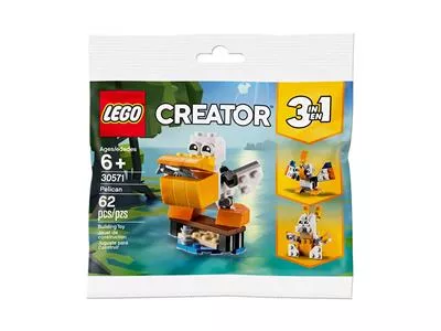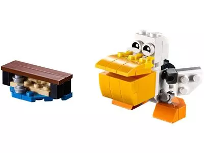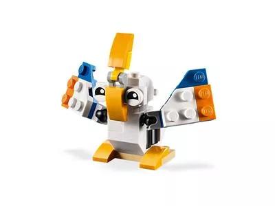 Baue einen niedlichen Pelikan mit großem, aufklappbarem Schnabel – perfekt um köstliche Fische zu fangen. Baue ihn anschließend in einen Hoppelhasen mit beweglichen Ohren oder einen flinken Vogel mit flatternden Flügeln um.