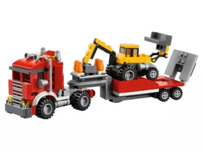 Der robuste, bewegliche Sattelschlepper lässt dich auch bei schweren Grabarbeiten nicht im Stich! Stell die Baukegel auf, senke die Rampe und entlade den Bagger! Auf den leistungsfähigen Bagger mit der beweglichen Frontladeschaufel und dem Baggerausleger kannst du dich verlassen. Mit realistischen Details wie einem metallenen Kühlergrill, Warnblinkern und Hupe. Der Sattelschlepper kann in eine robuste LKW-Arbeitsbühne mit beweglichem Arm oder einen Geländetransporter mit Strandbuggy, Rampe und Ersatzrad umgebaut werden.