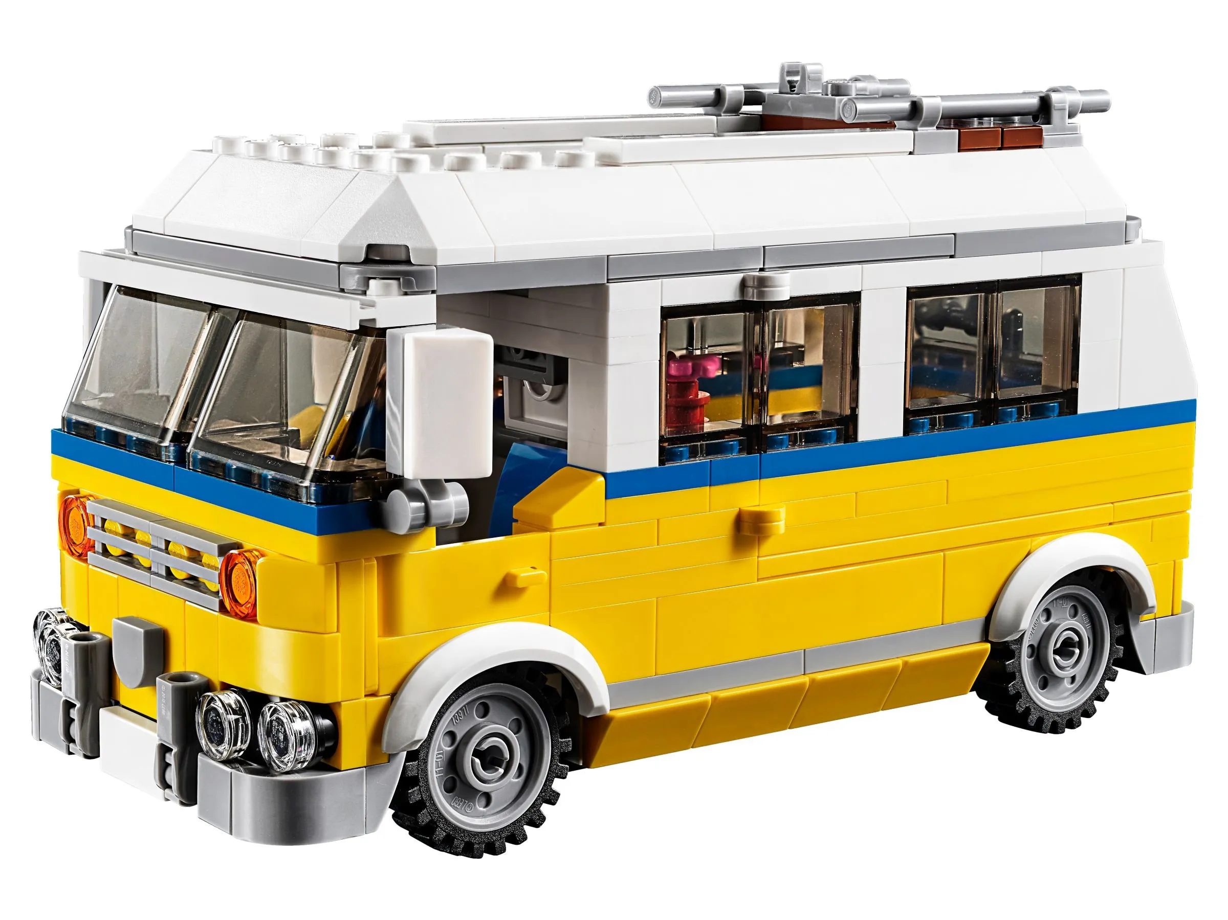 Фургон для сёрферов: Размеры - 10х24х8 см. Этот фургон, выполненный в яркой цветовой гамме, является олицетворением свободы и молодёжного движения. Оснащённый тонированными окнами, просторным салоном и съёмной крышей, фургон также включает в себя кухонную зону и кровать. На крыше можно установить доску для сёрфинга и другие аксессуары для отдыха на пляже.