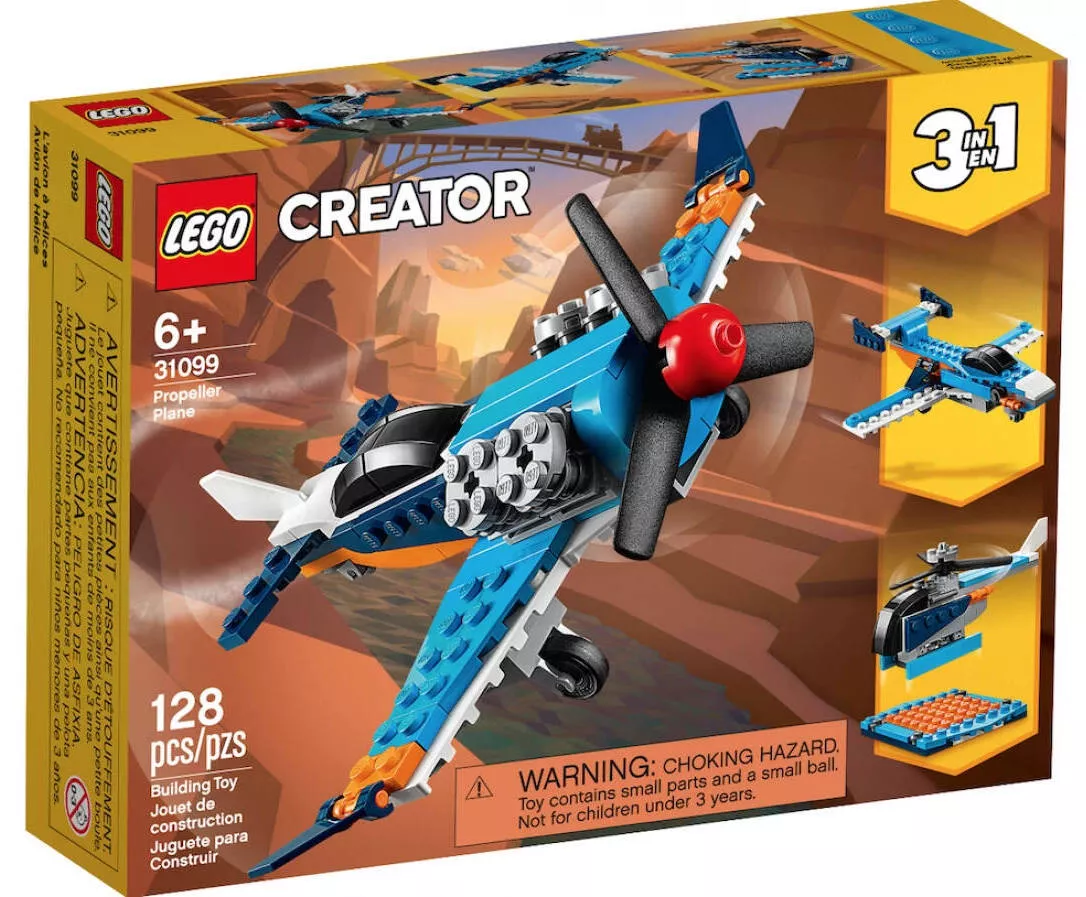 Конструктор LEGO Creator 31099 Винтовой самолёт – это захватывающий набор, который позволяет вам собрать три разные модели воздушного и морского транспорта, вдохновляя на творческую игру и приключения. Этот набор из серии LEGO Creator 3-в-1 предлагает множество возможностей для весёлого и разнообразного конструирования.