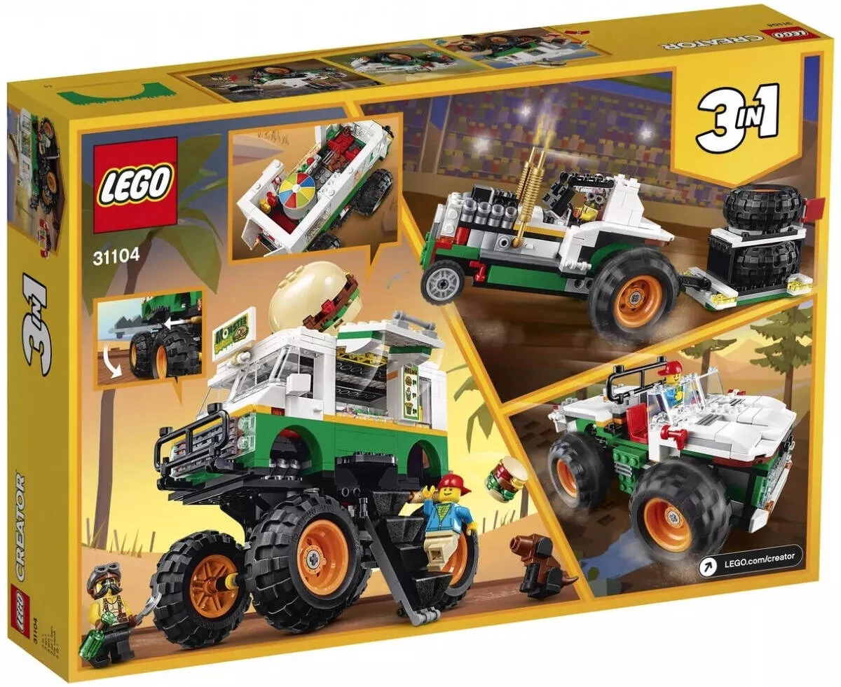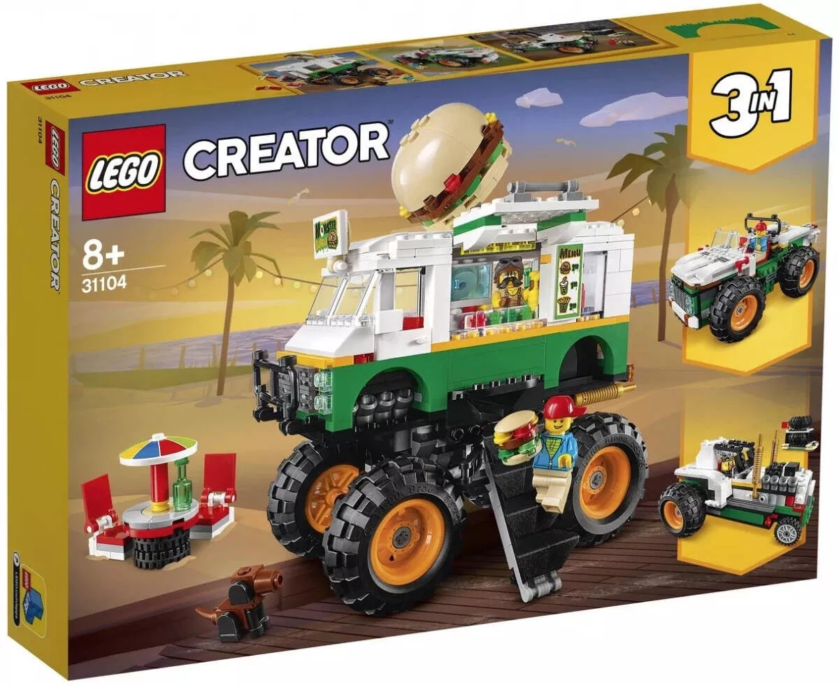 Набор LEGO Creator 31104 Грузовик Монстрбургер идеально подходит для всех, кто любит автомобили и творчество. Создайте свои собственные транспортные средства, перестраивайте модели и наслаждайтесь захватывающими приключениями с этим увлекательным и многофункциональным конструктором!