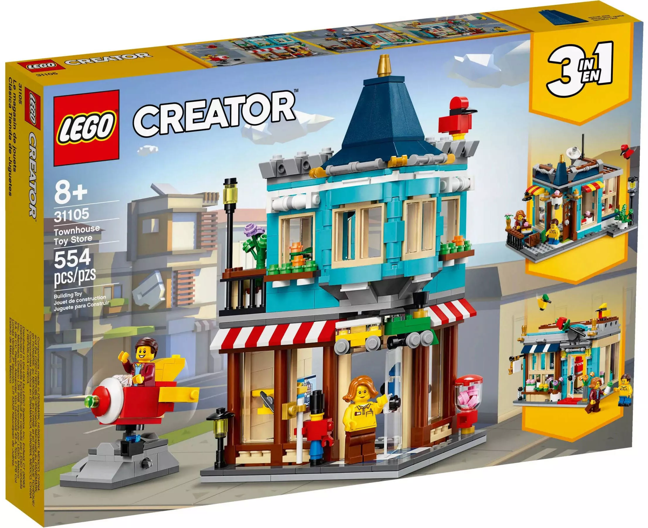 Набор LEGO Creator 31105, известный как Городской магазин игрушек, представляет собой воплощение мечты каждого ребенка и взрослого, увлеченного конструкторами LEGO. Этот комплект позволяет возвести не просто магазин, но истинный центр радости и воображения в вашем лего-городе.