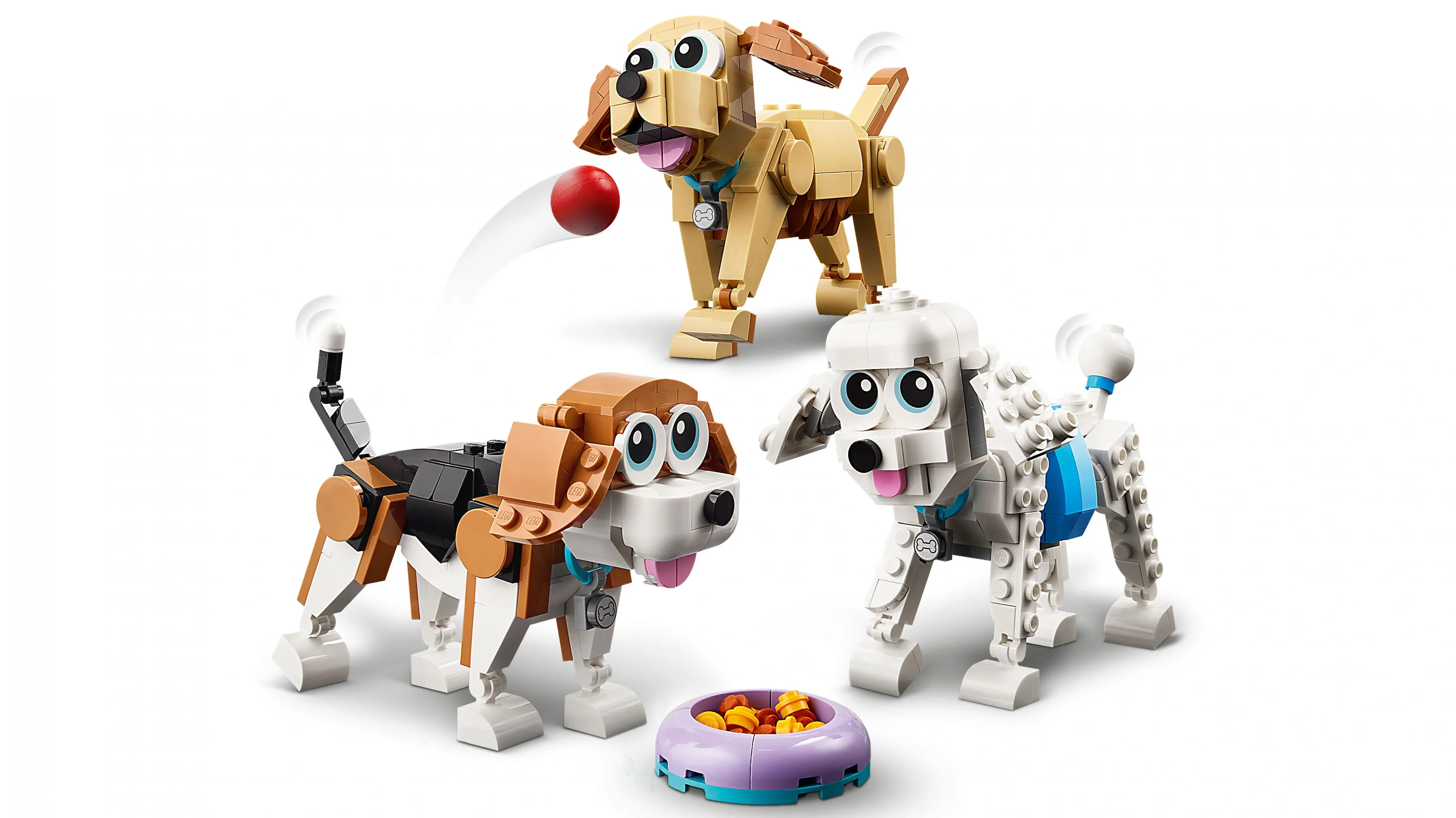 Набор Очаровательные собаки из серии LEGO Creator предлагает три варианта сборки, каждая из которых представляет разные породы собак. Это позволяет детям придумывать новые игровые сюжеты и менять своих любимцев в зависимости от настроения. Этот комплект вдохновляет на создание весёлых историй и развивает креативное мышление.