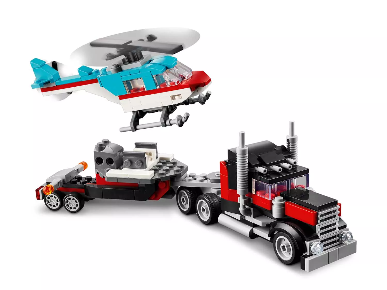 Грузовик-платформа с вертолетом из серии LEGO Creator включает в себя детализированные модели и аксессуары, которые делают игру интересной и разнообразной.