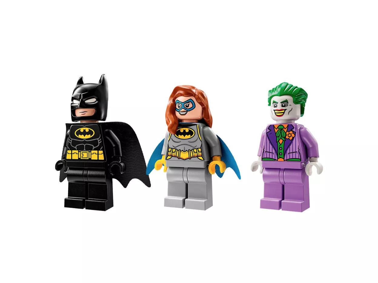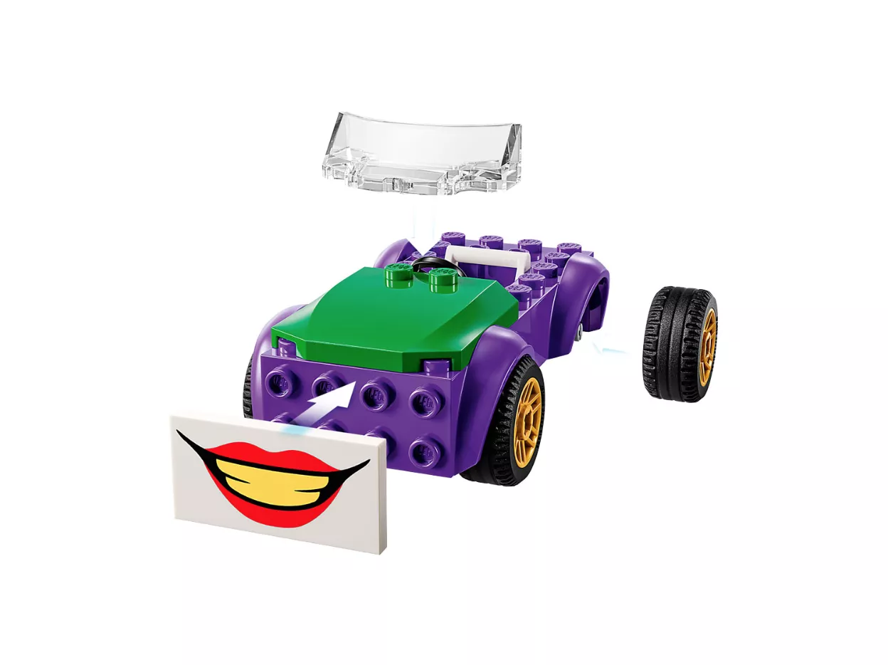 • В этот набор входят сборная машина, самолет Бэтвинг, минифигурки Бэтмена, Бэтгёрл и Джокера, а также большой стартовый кубик для шасси, чтобы сборка была быстрой и увлекательной.